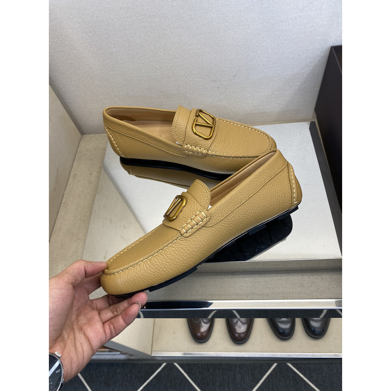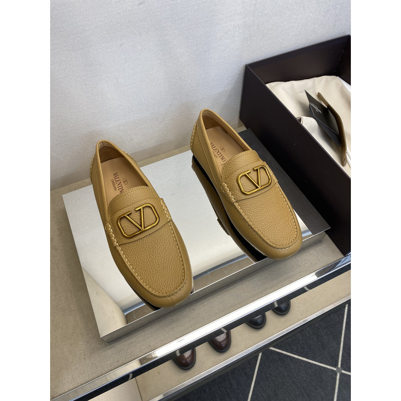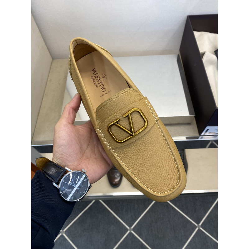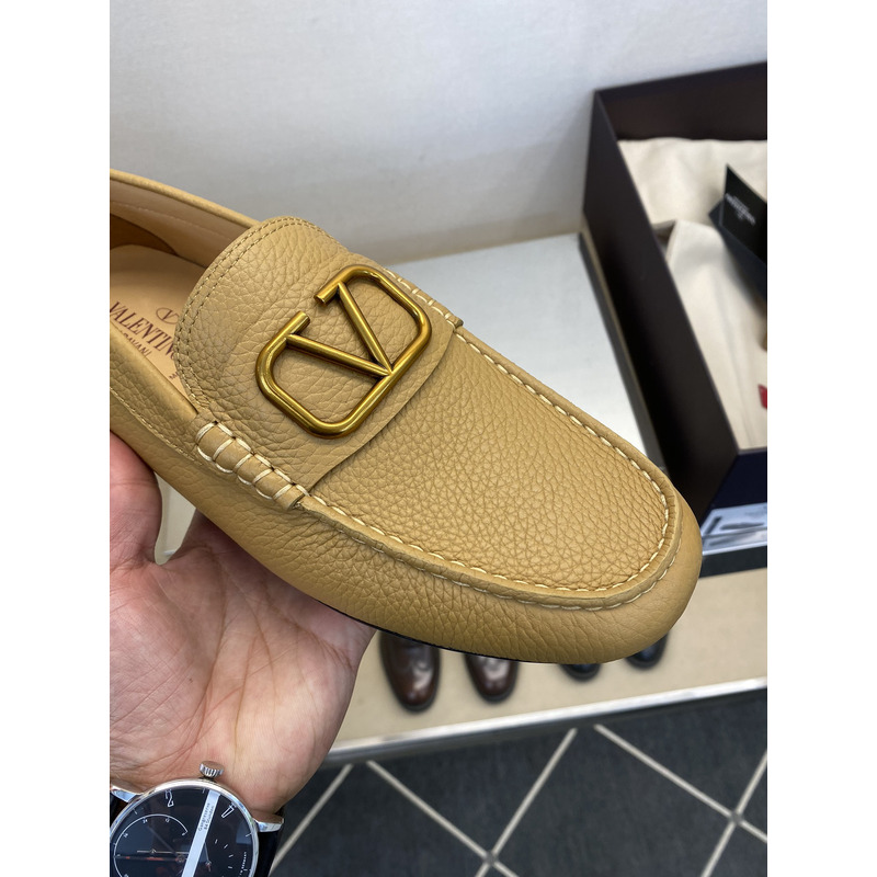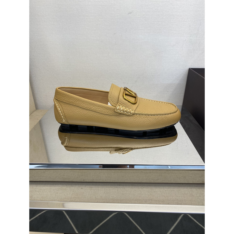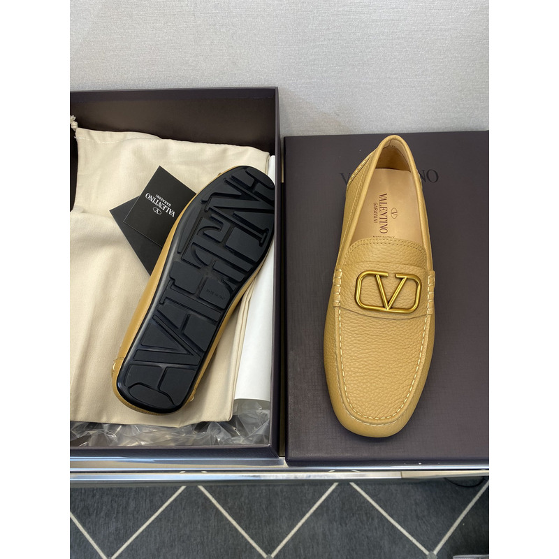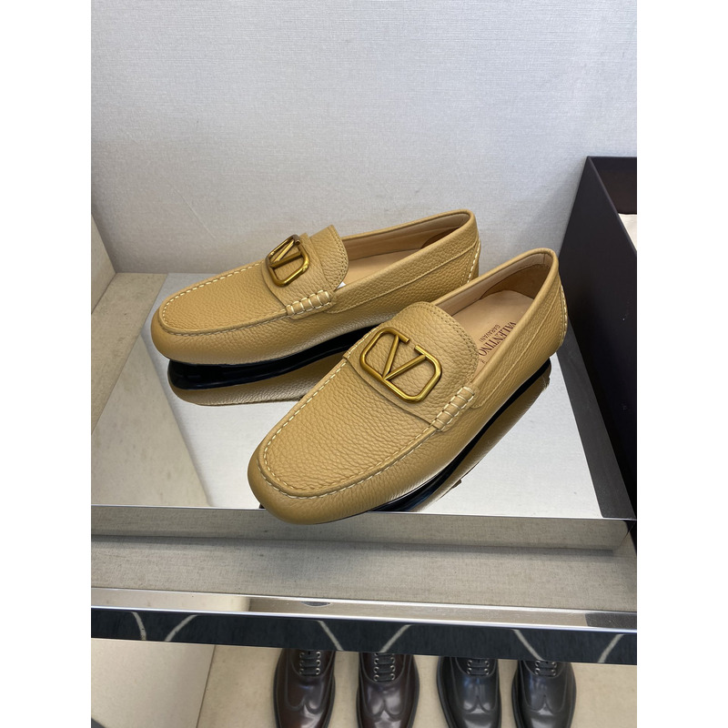Valentino Garavani VLogo Signature Grainy Leather Loafers Light Brown