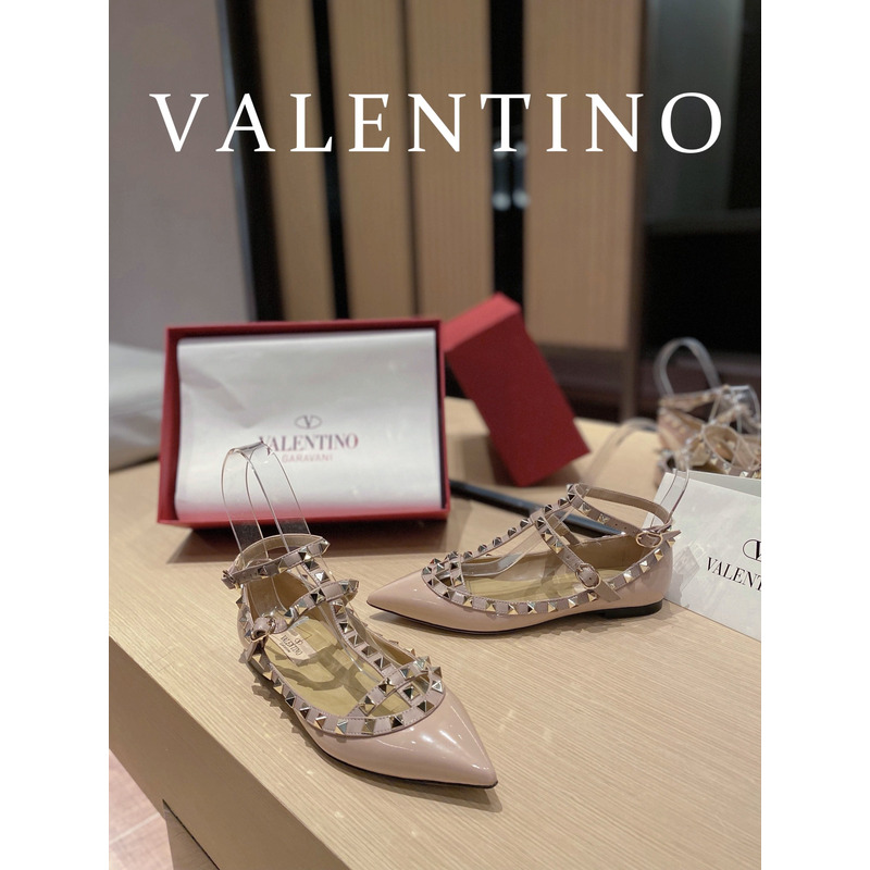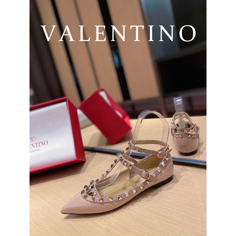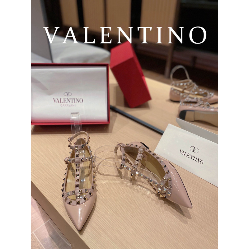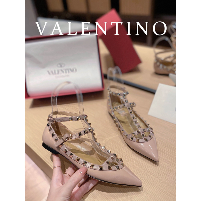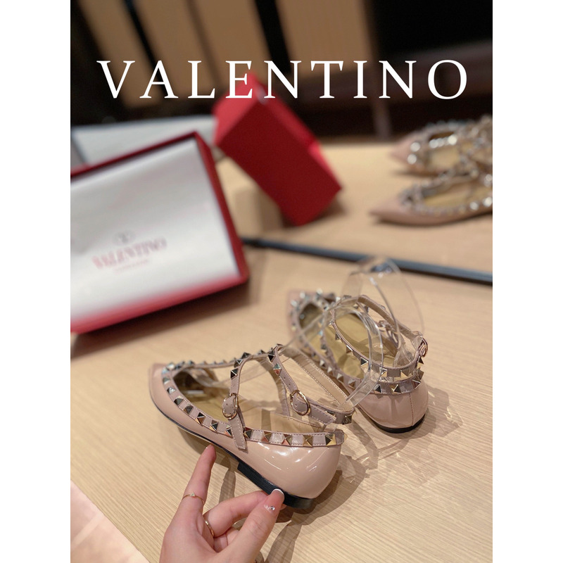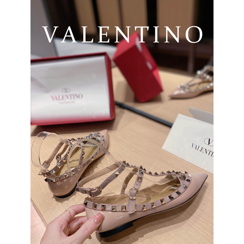 Valentino Patent Rockstud Ballet Flat In Poudre