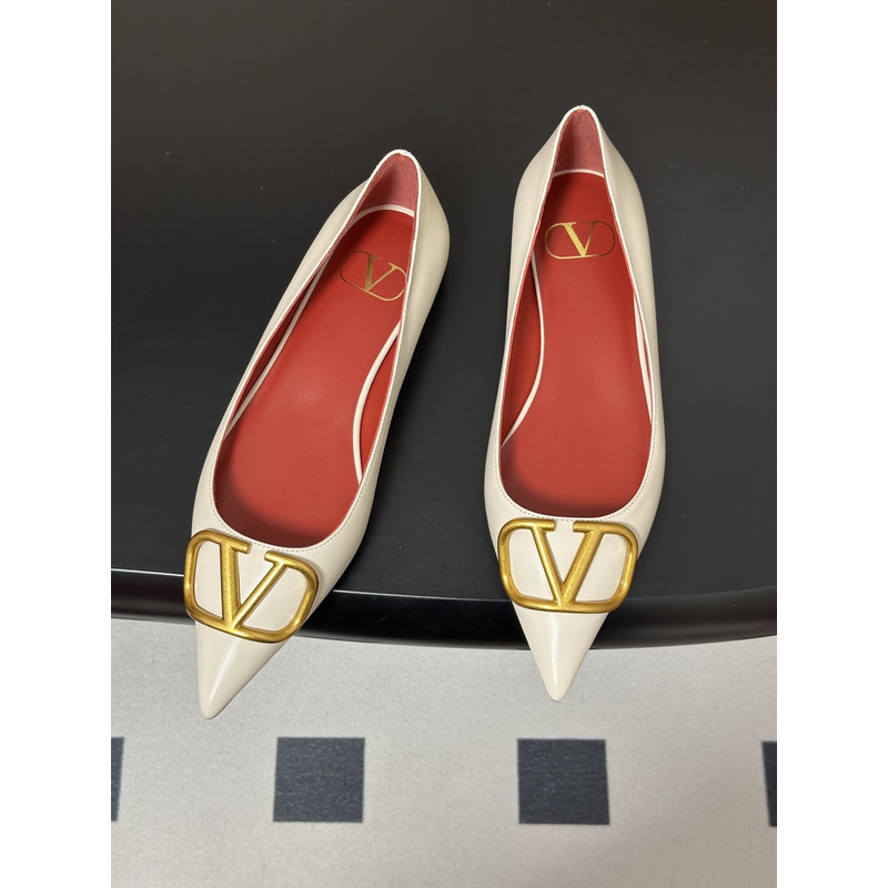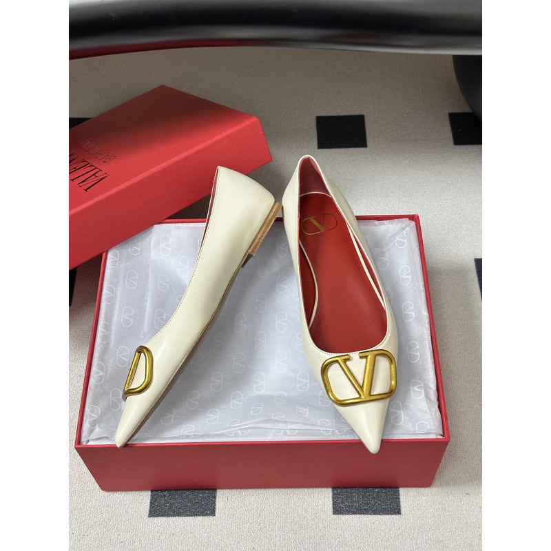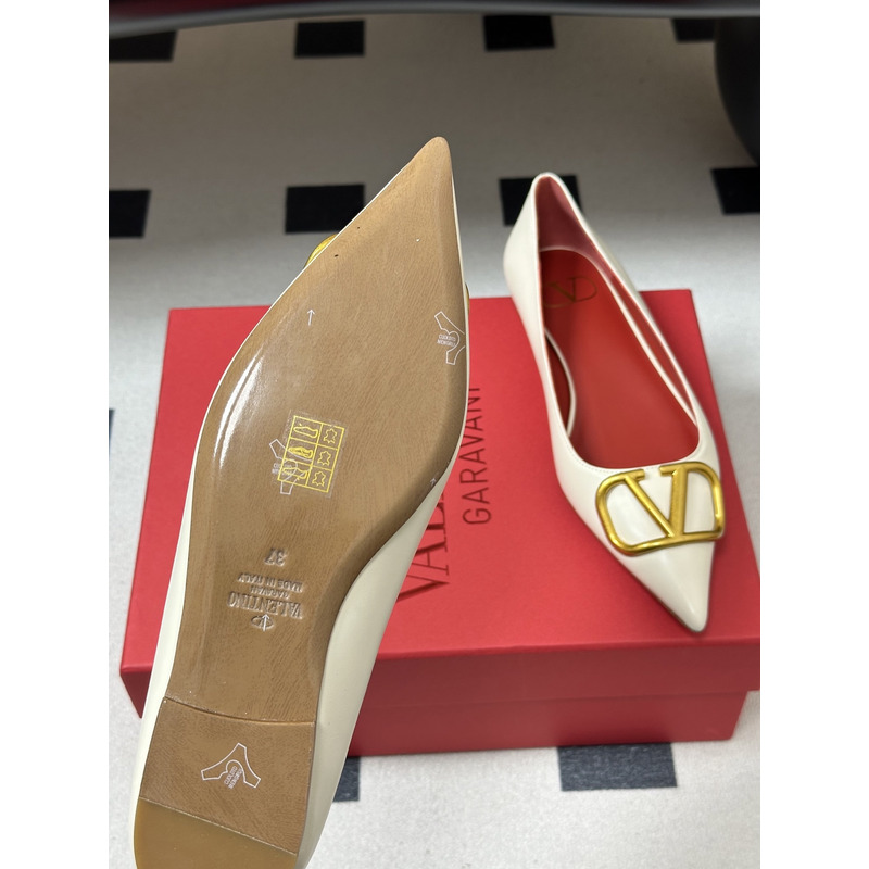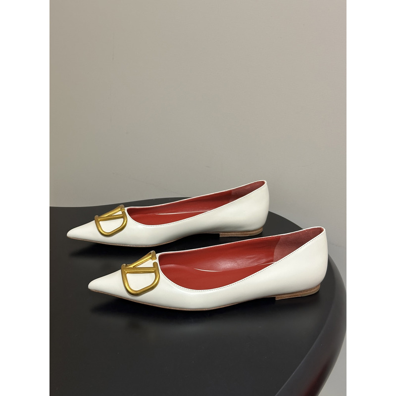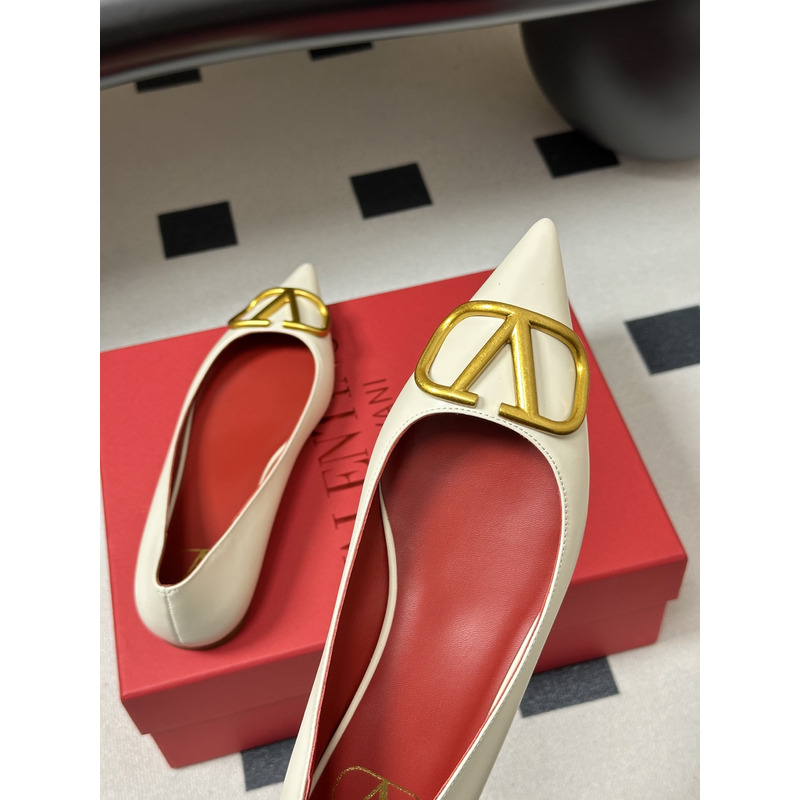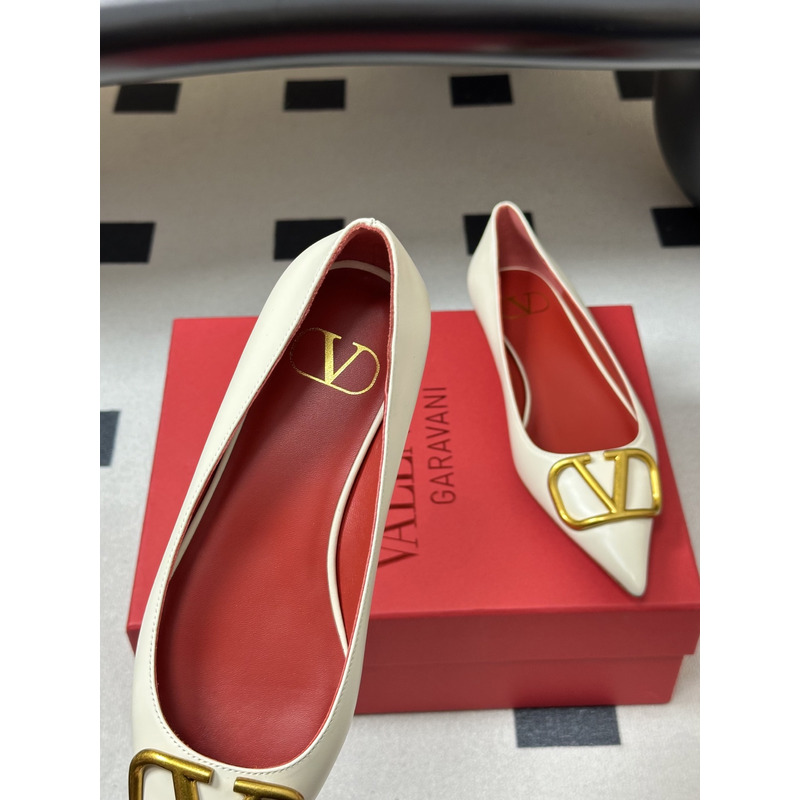 Valentino VLogo Signature Calfskin Ballet Flats In White/Red