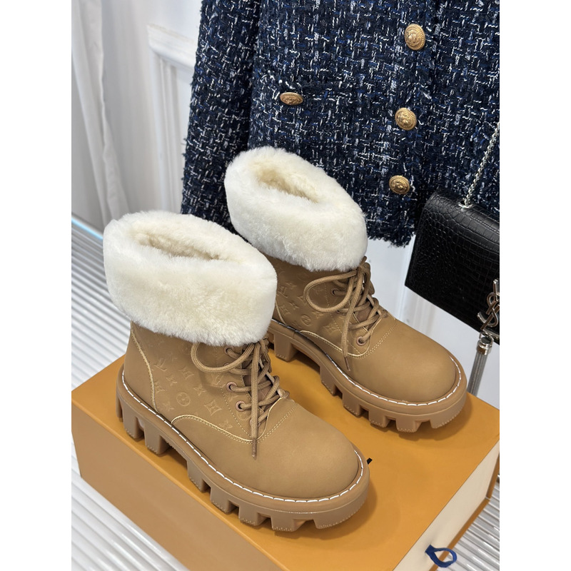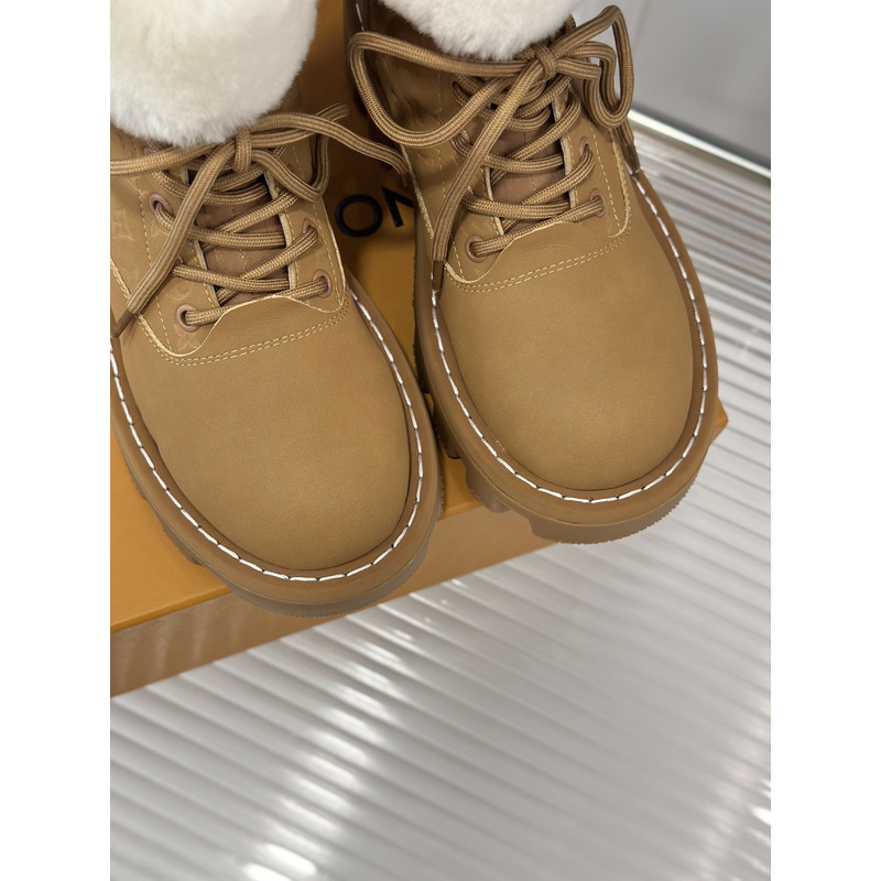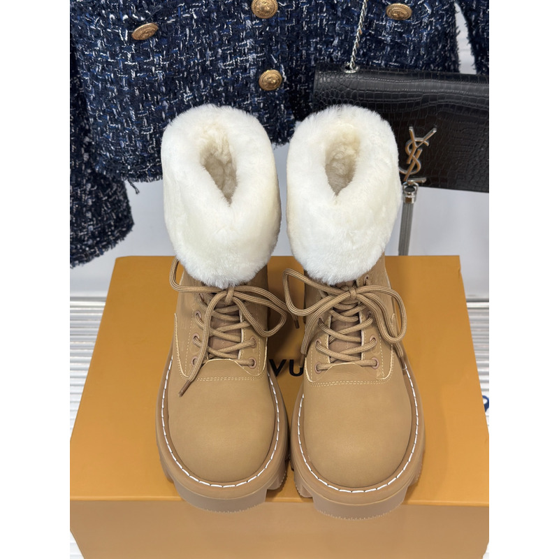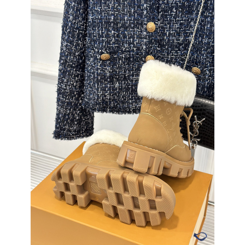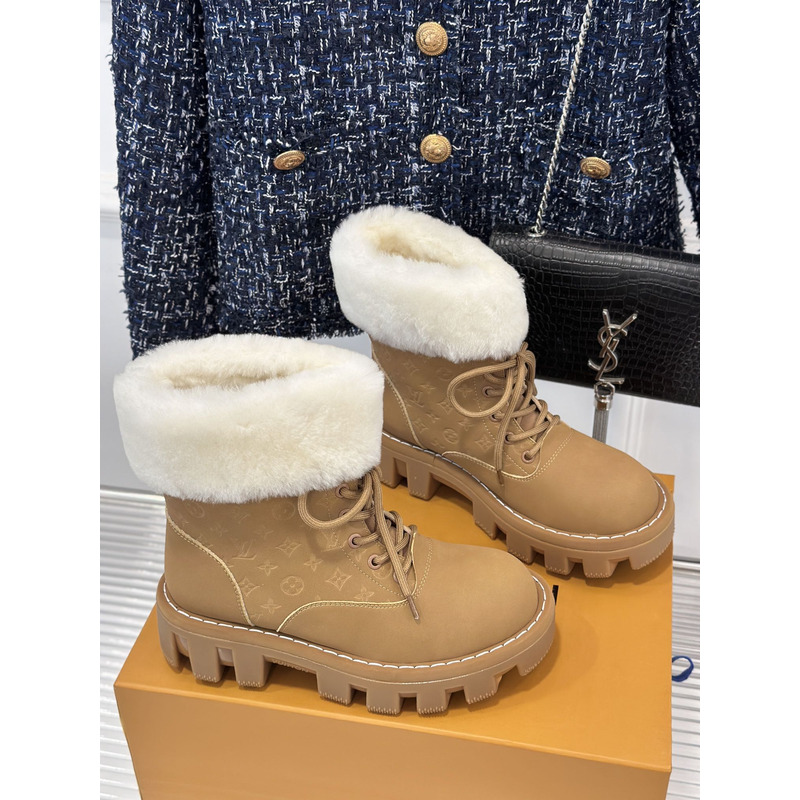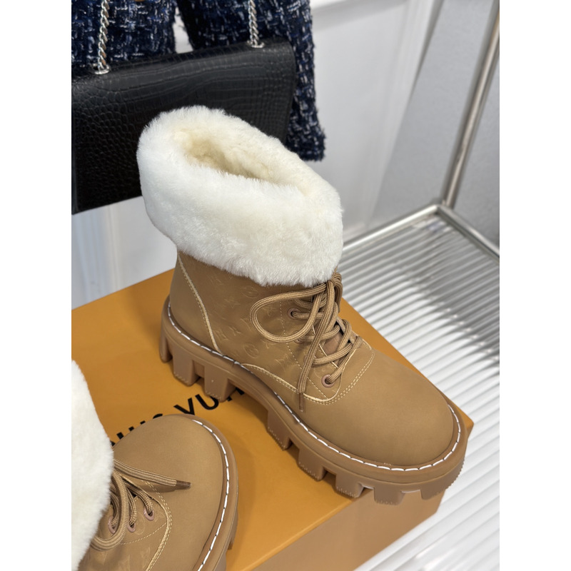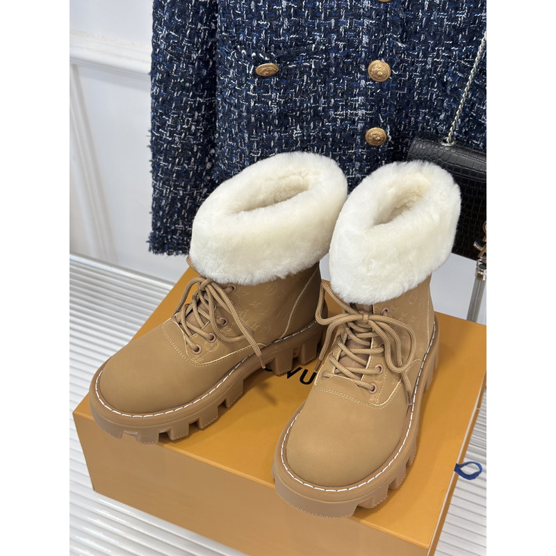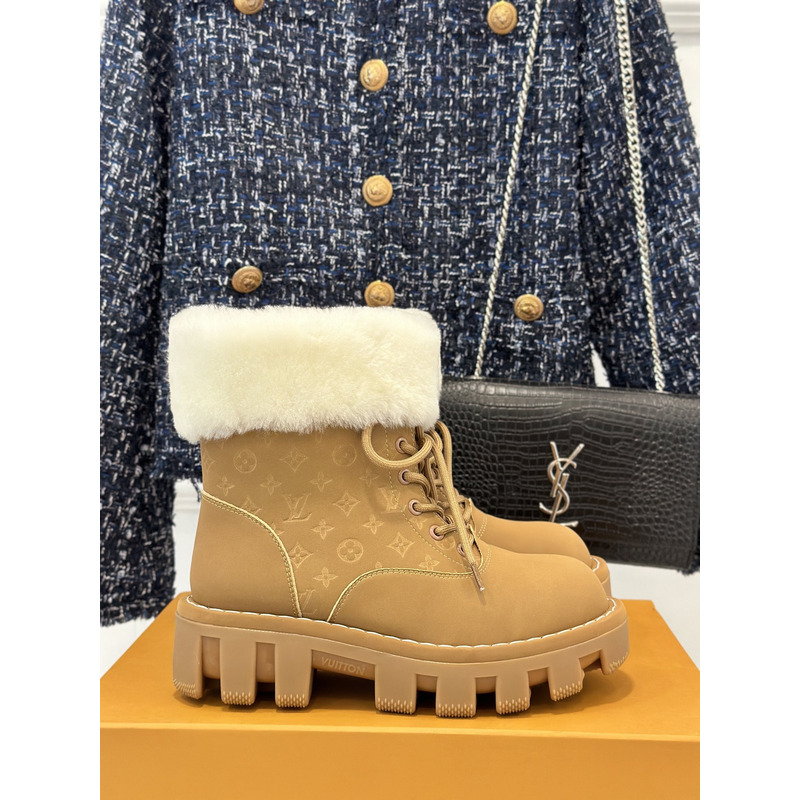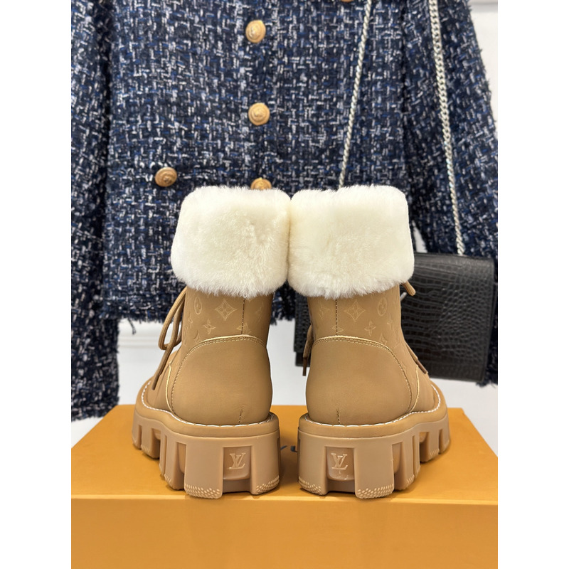 Louis Vuitton Fur Trimmed Ankle Boot In Beige