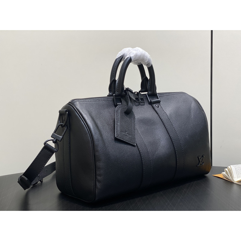Louis Vuitton Keepall Bandoulière 35 In Aerogram Black Leather