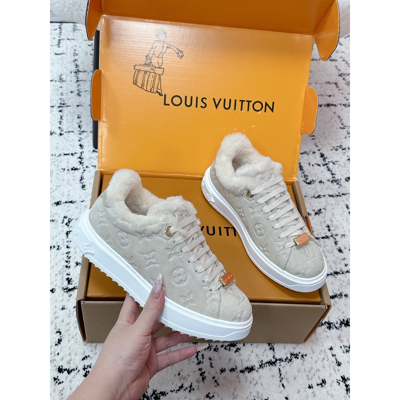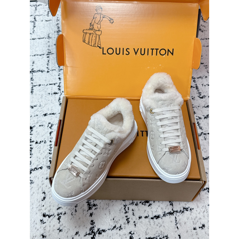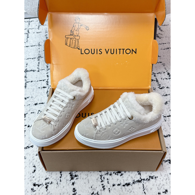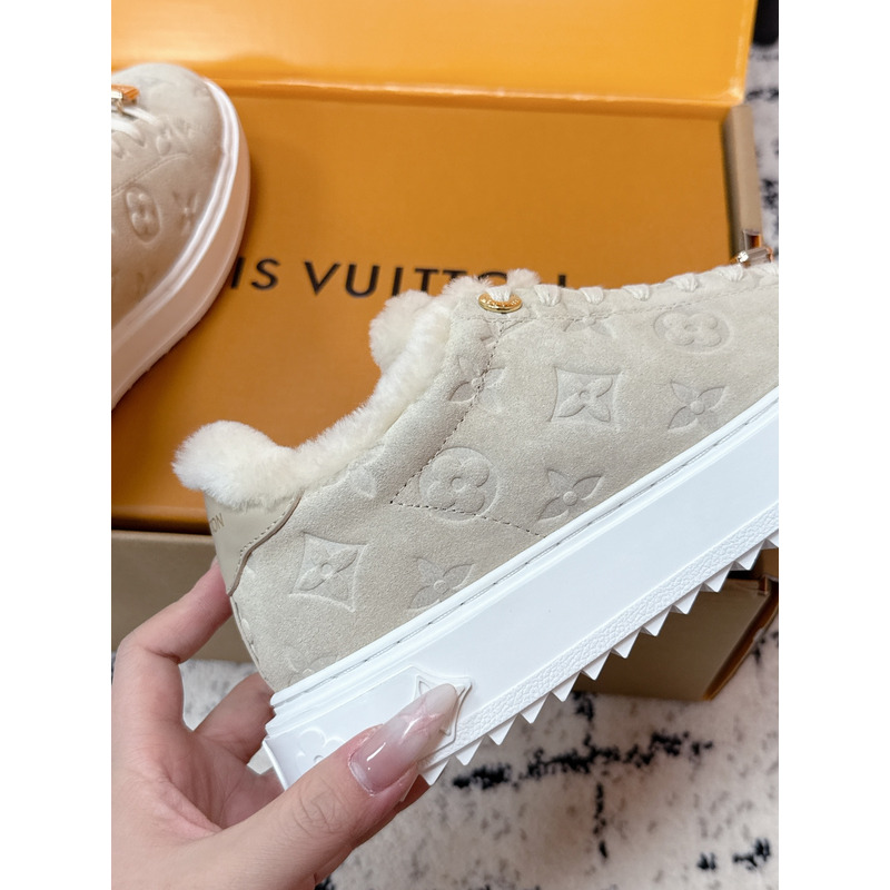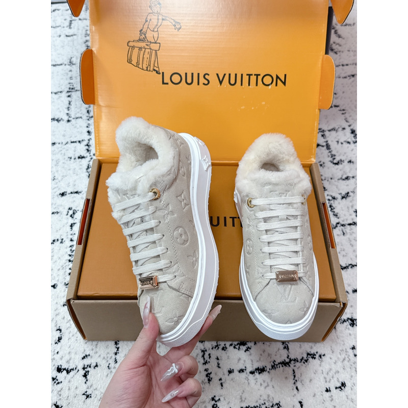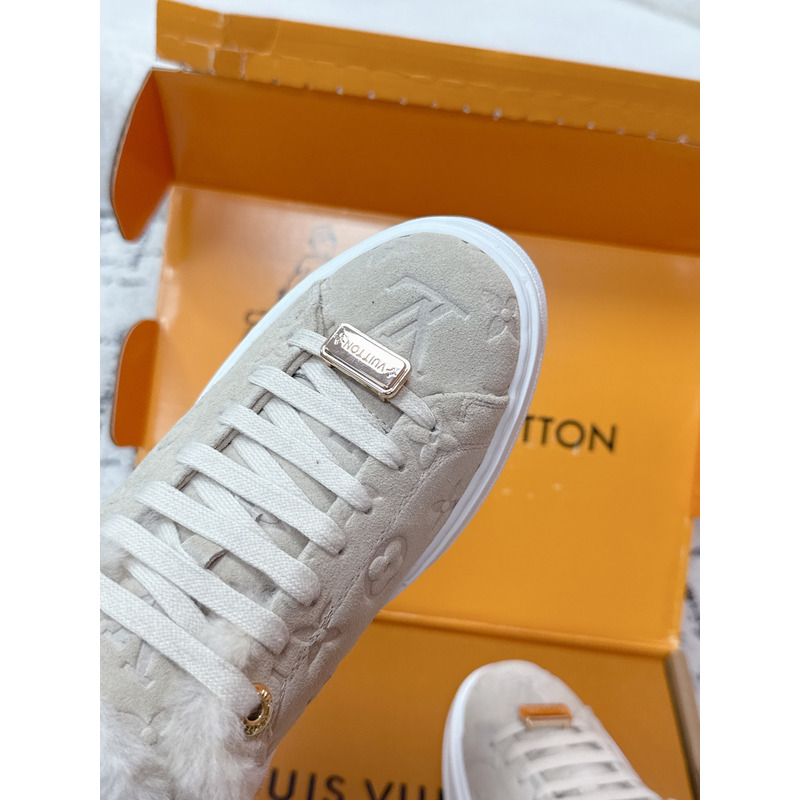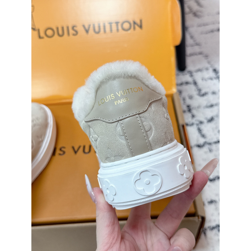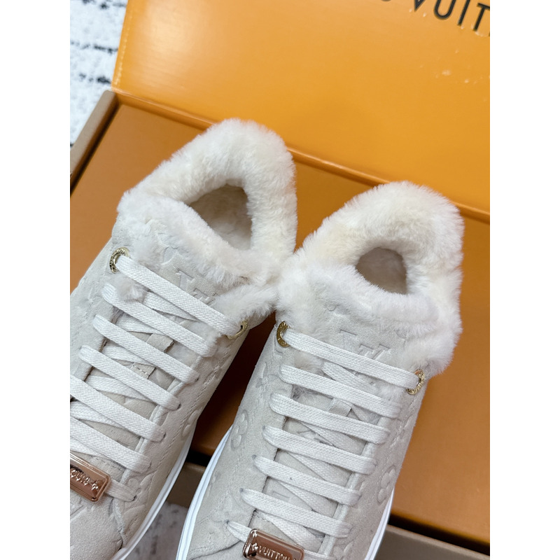 Louis Vuitton LV Trainer Fur-Lined Monogram Sneakers In Light Beige