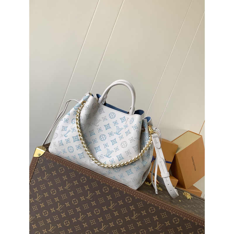 Louis Vuitton Bella Tote Perforated Mahina Calfskin Leather In Light Grey
