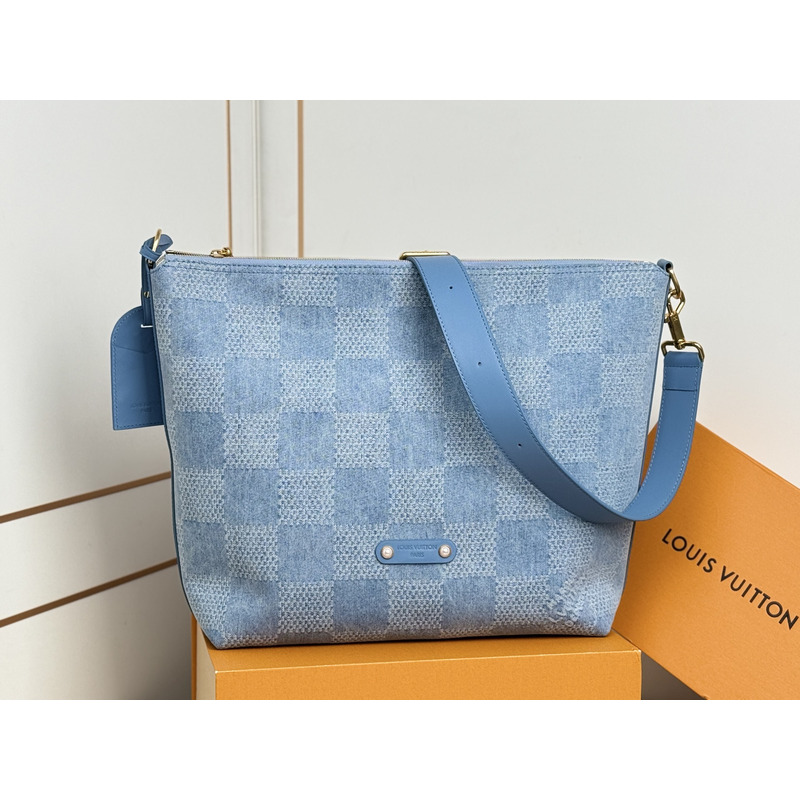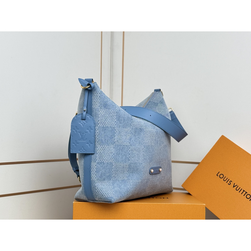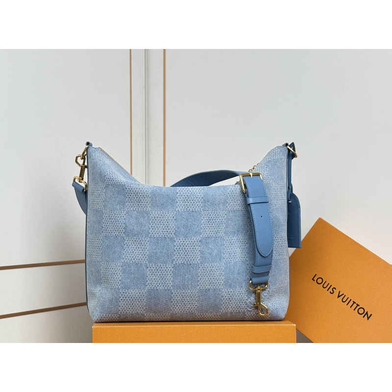 Louis Vuitton Vagabond Hobo Damier Denim 3D Cotton Canvas Denim Blue