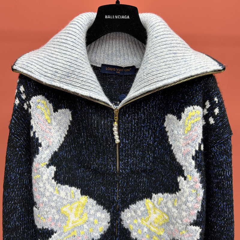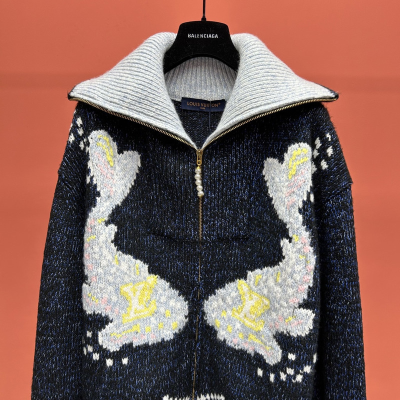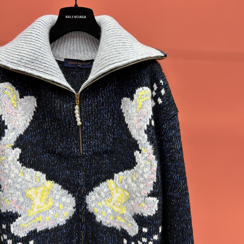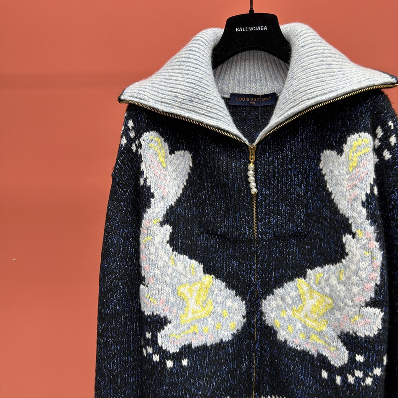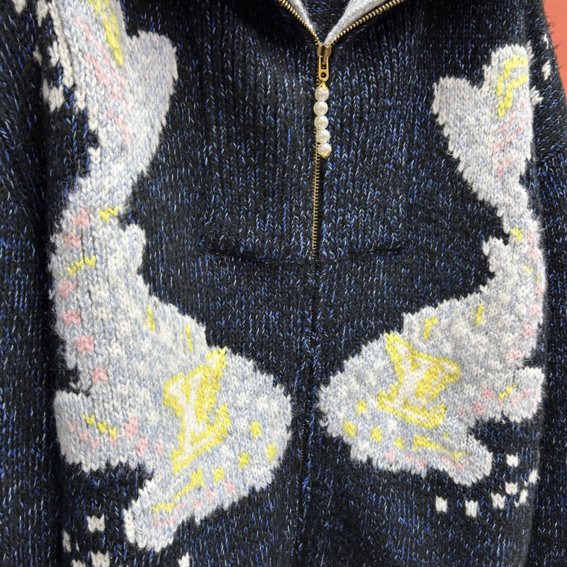 Louis Vuitton Zippered Knitted Blouson With Koi Fish Black