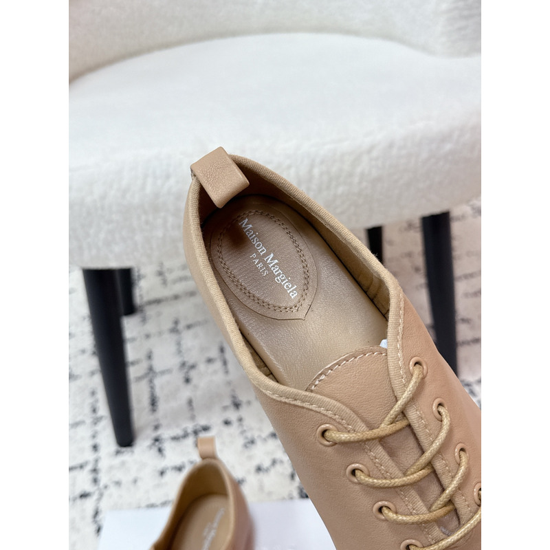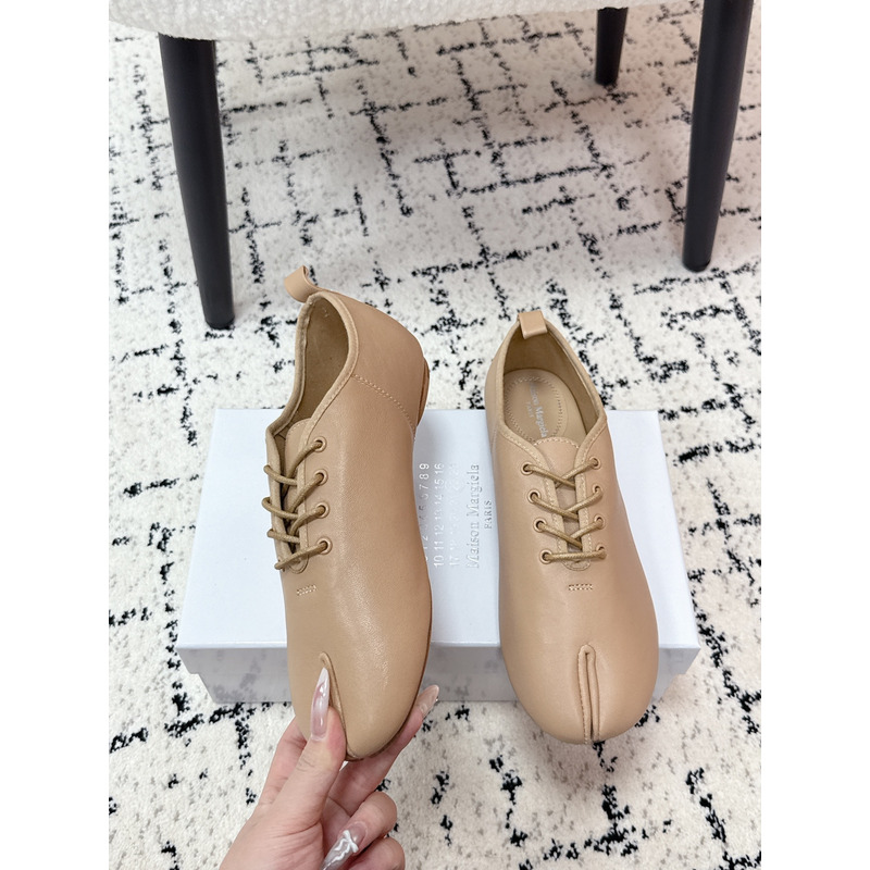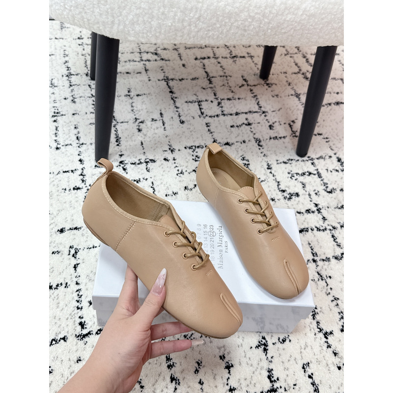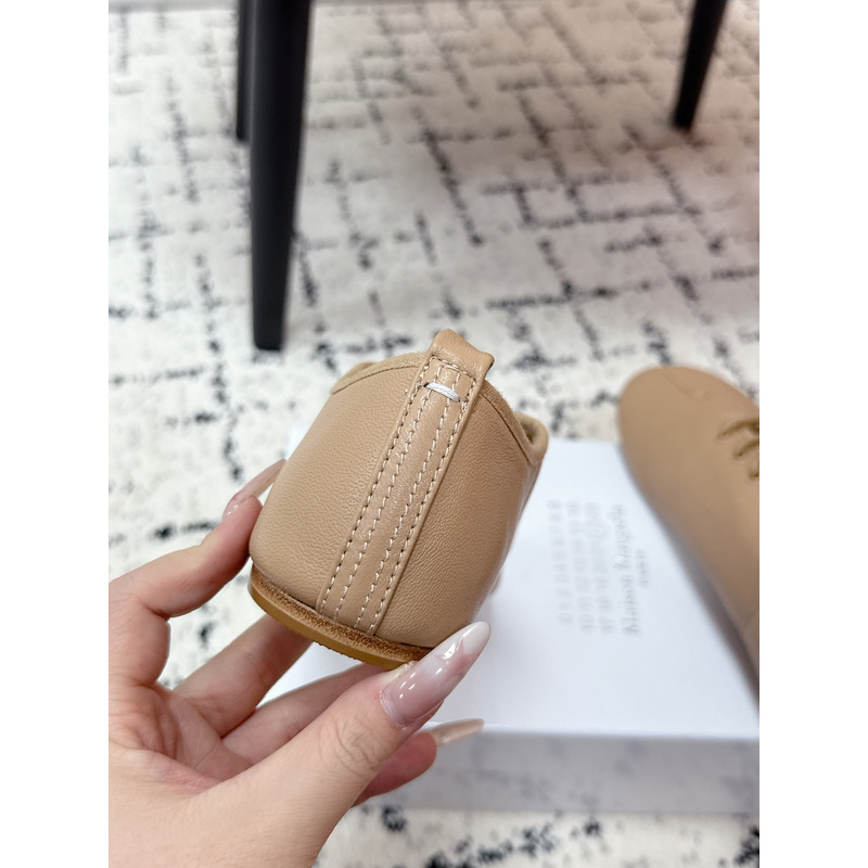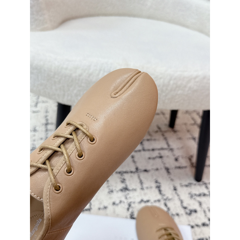 Maison Margiela Minimalist Lace-Up Tabi Flats in Beige Leather
