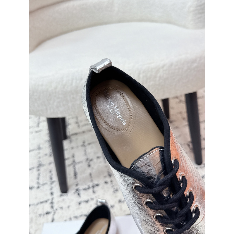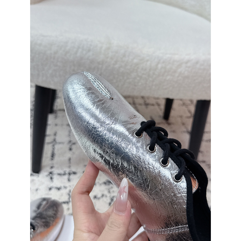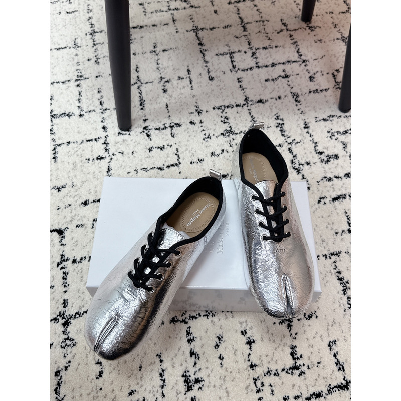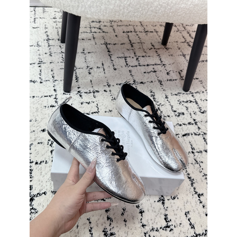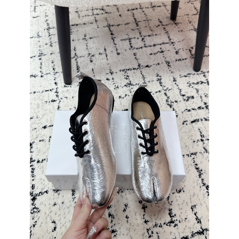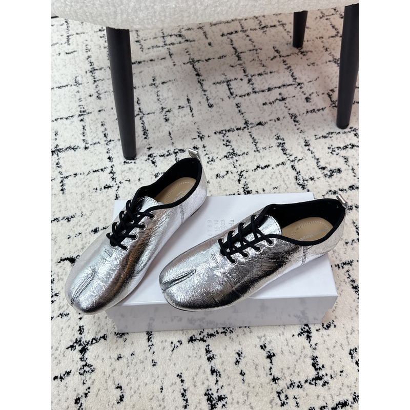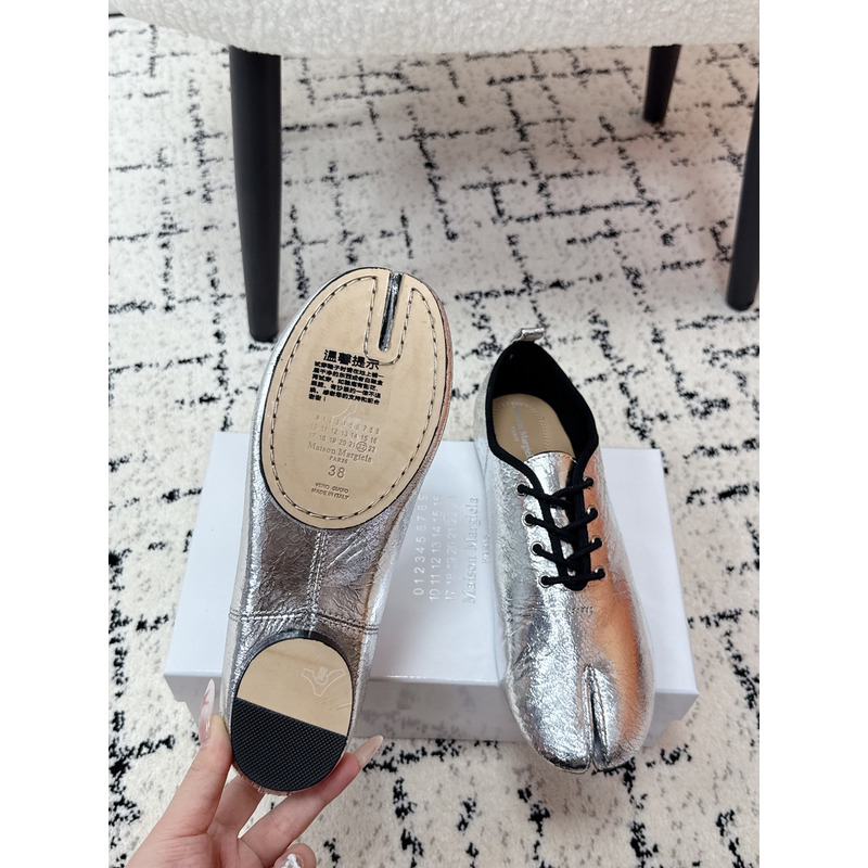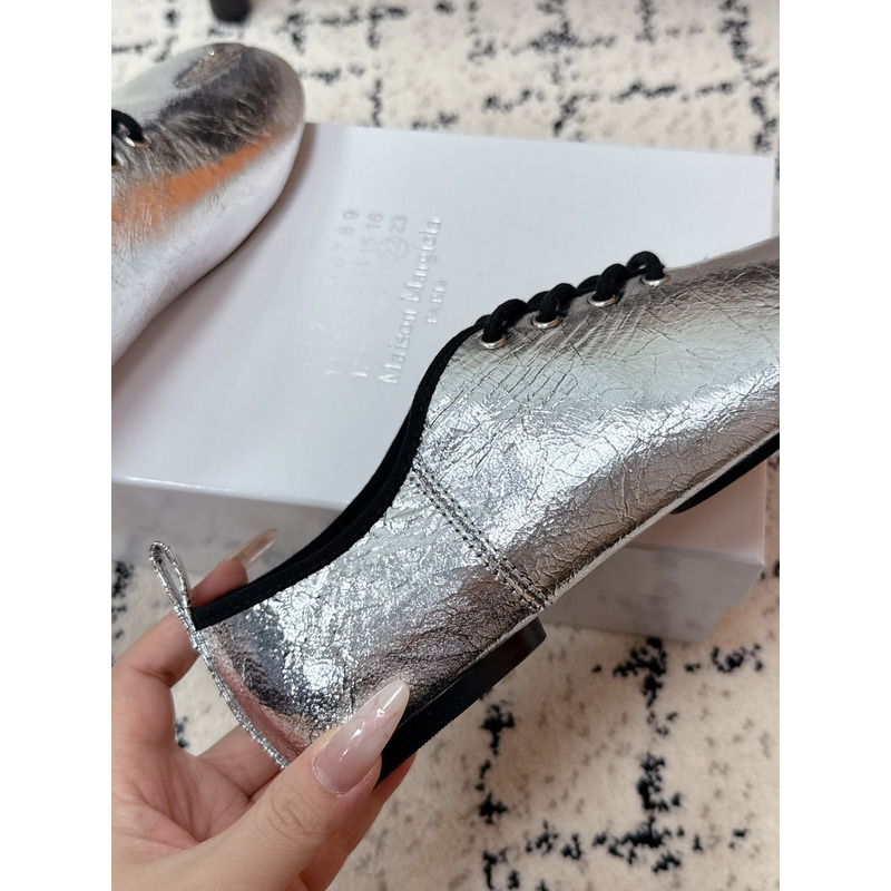 Maison Margiela Tabi Lace-Up Flats in Metallic Silver Brushed Leather
