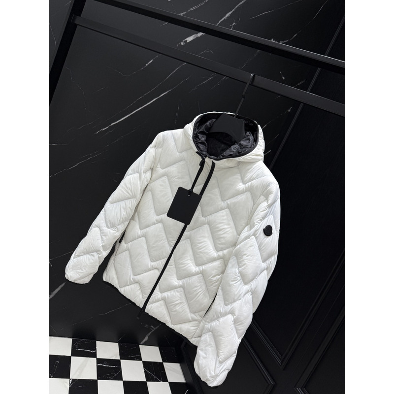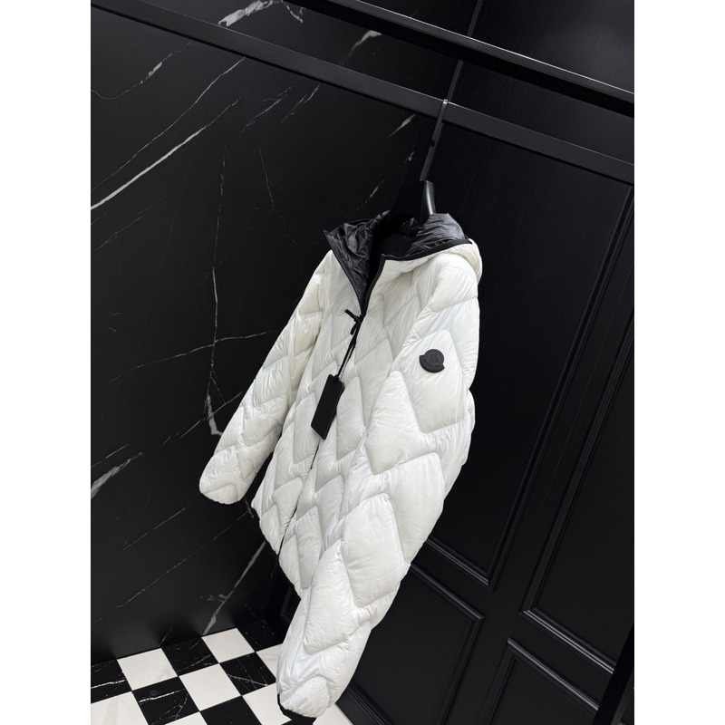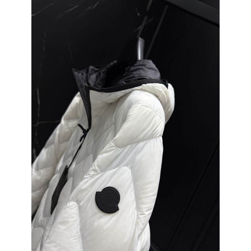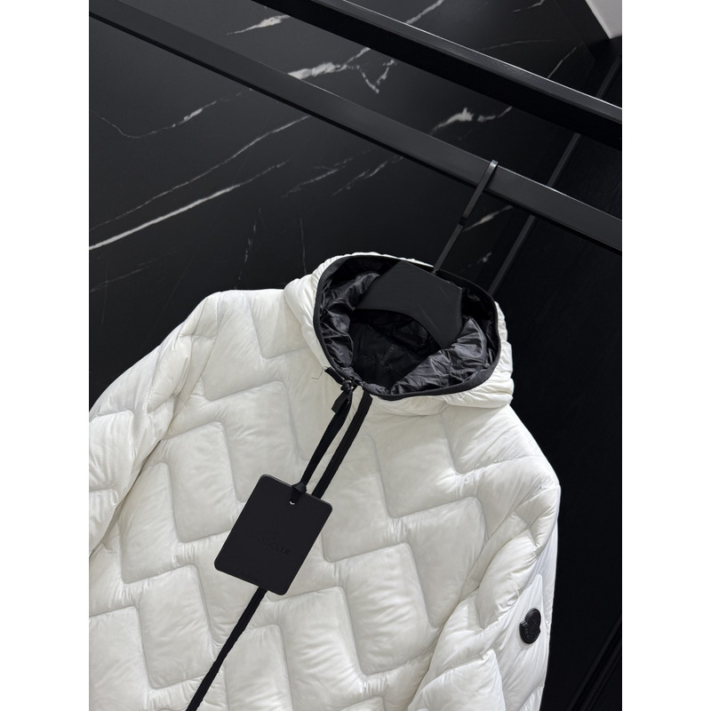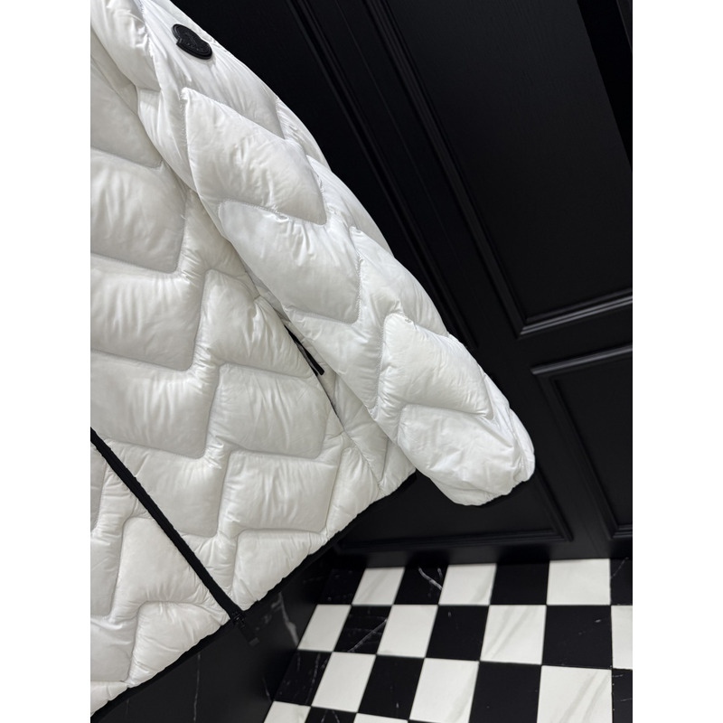 Moncler Bimont Hooded Wavequilted Short Down Jacket White