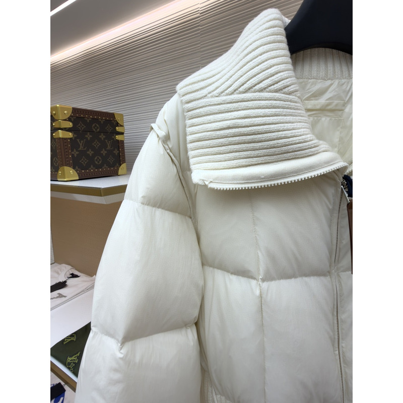 Moncler Contrast - Knit Detail Puffer Jacket Off White