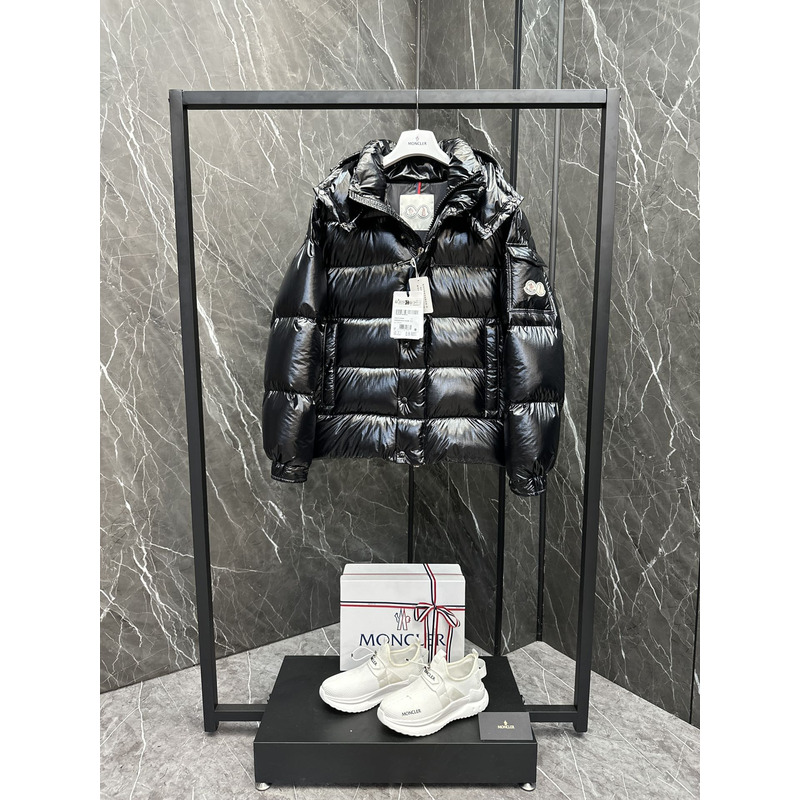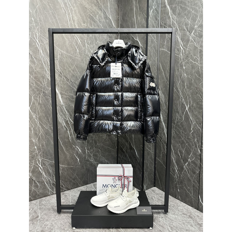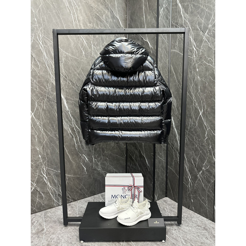 Moncler Hooded Short Down Jacket In Black