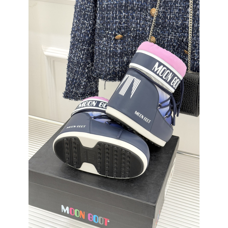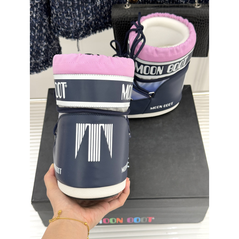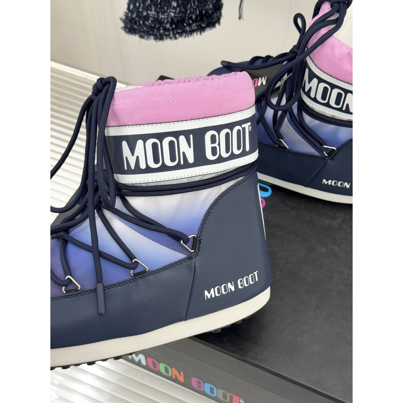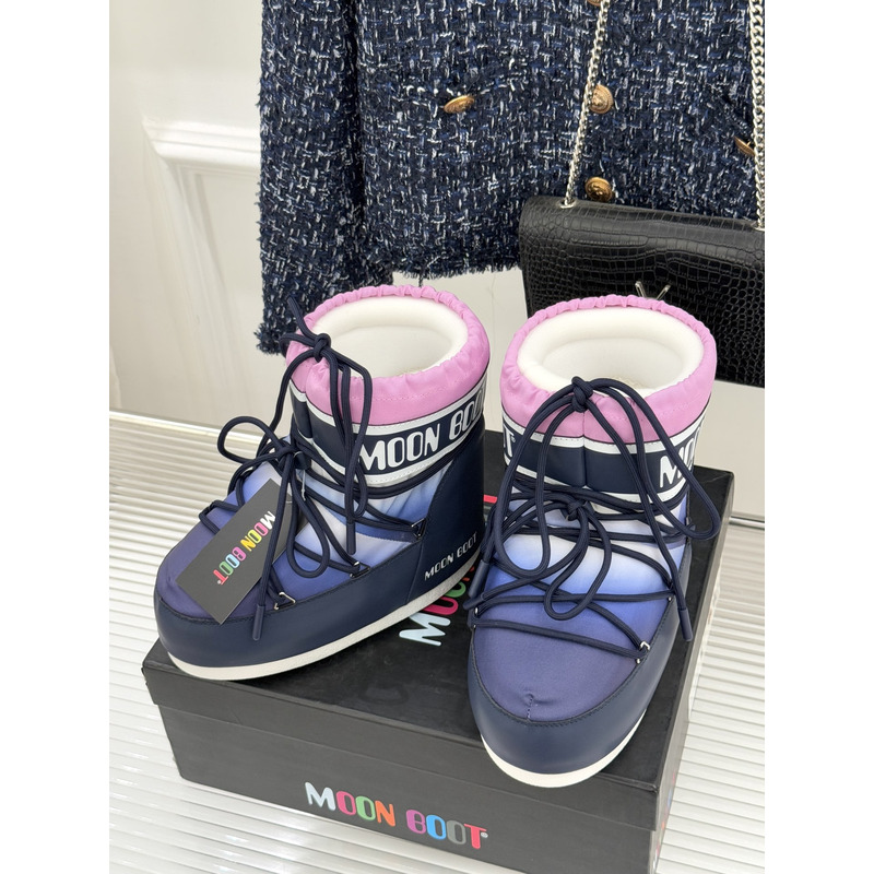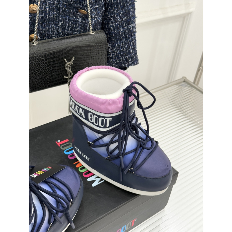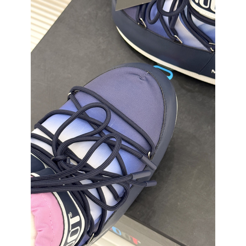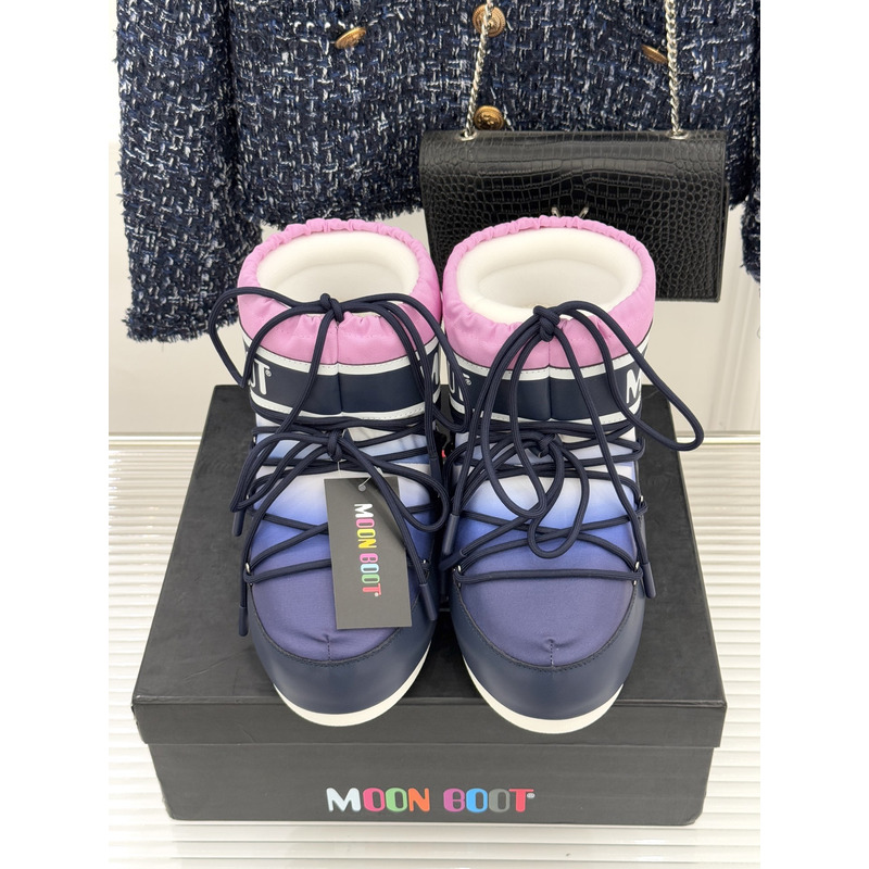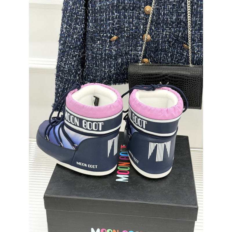 Moon Boot Icon Low Space Racing Boots In Navy Blue & Light Pink Gradient