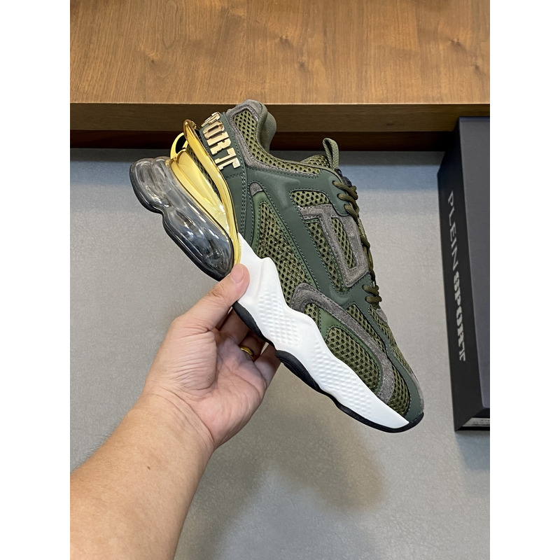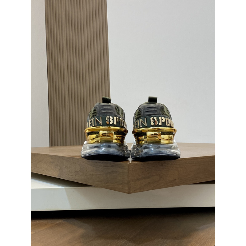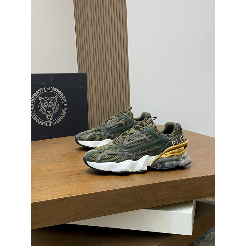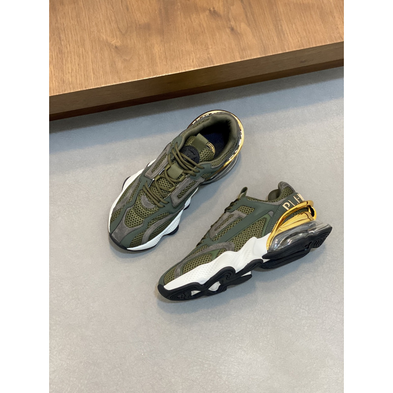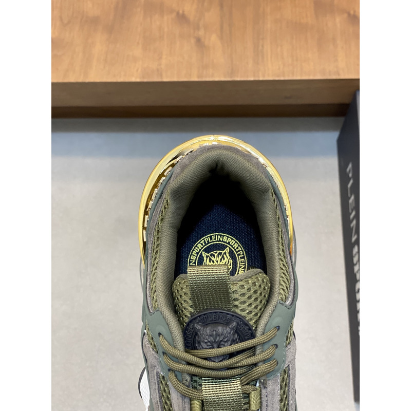 Philipp Plein Military - Green Mesh Chunky Sneaker with Gold Accents