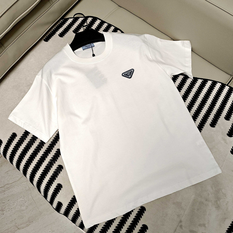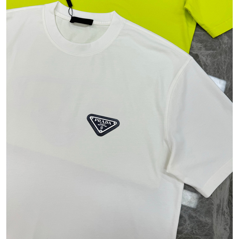 Prada Short-Sleeved T-shirt with Triangle Logo In White