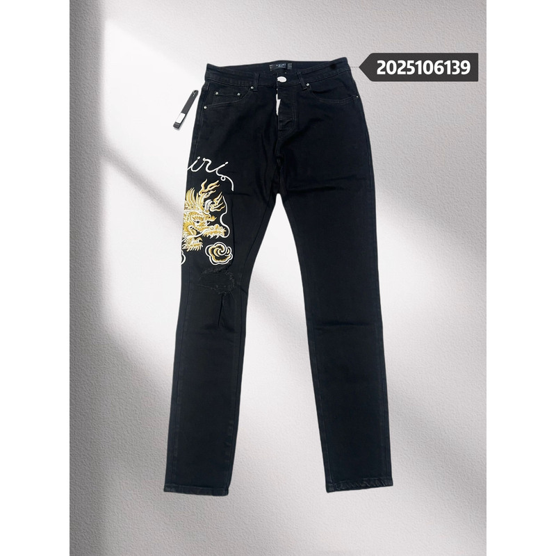 Amiri Staggered Embroidered Printed Skinny Jean In Black