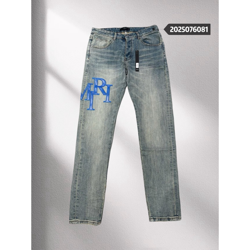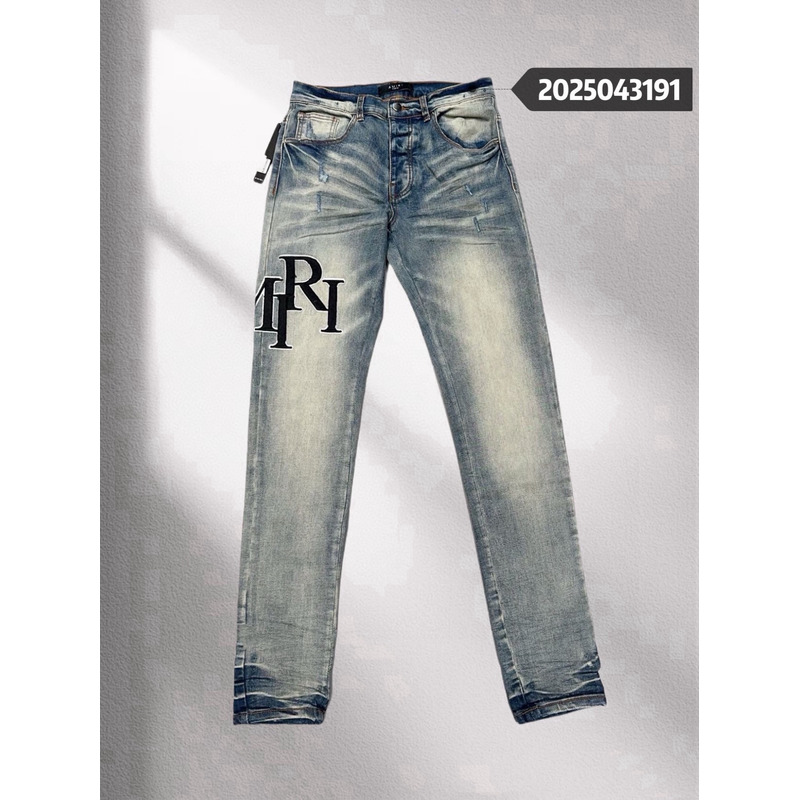 Amiri Staggered Logo Skinny Jean In Washed Light Blue
