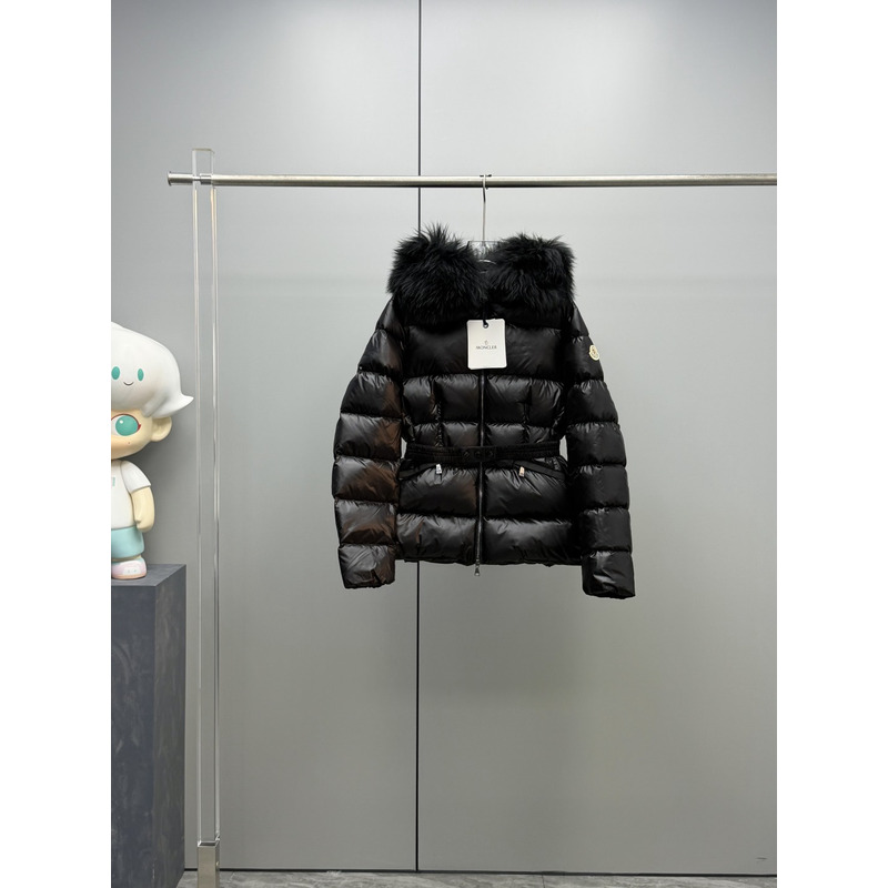 Moncler Black Boed Hooded Shearling-Trimmed Short Down Jacket