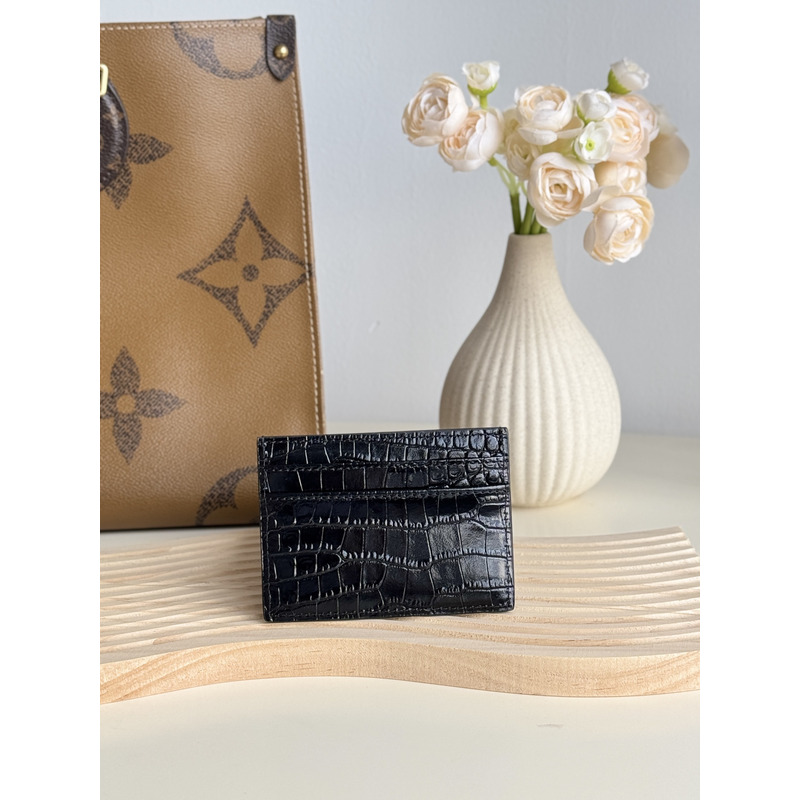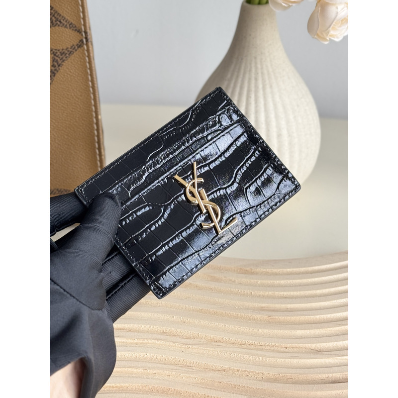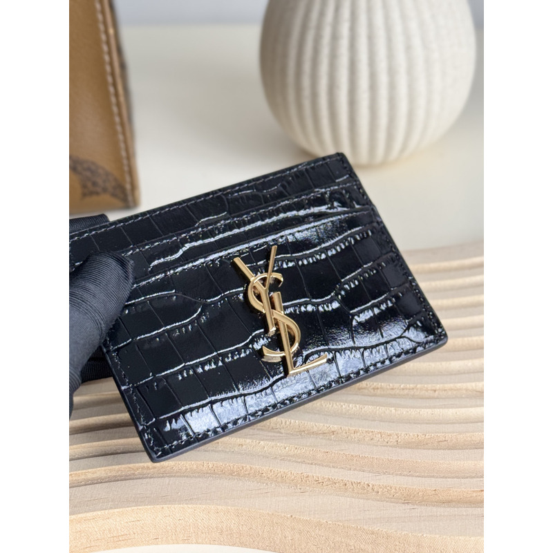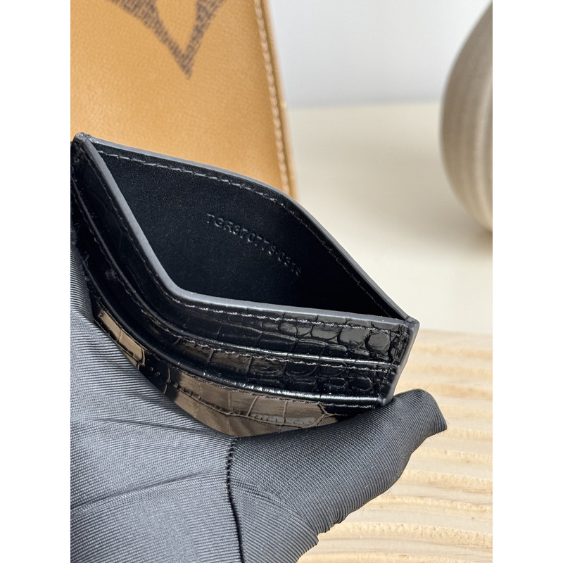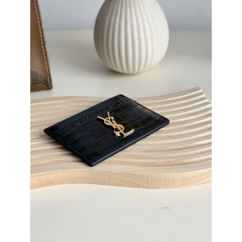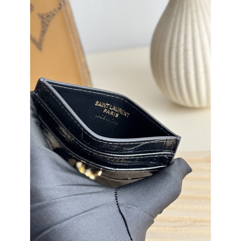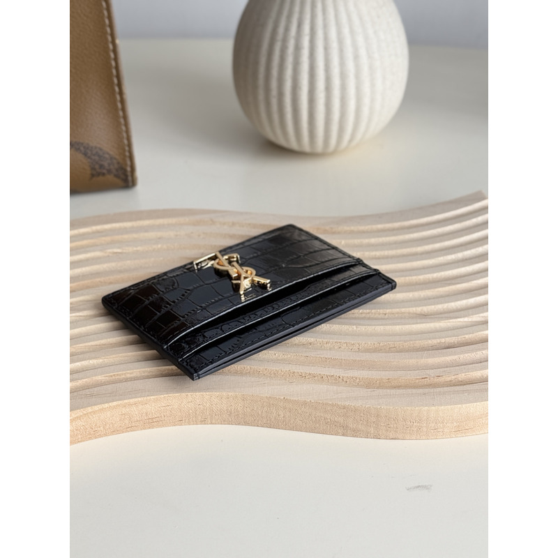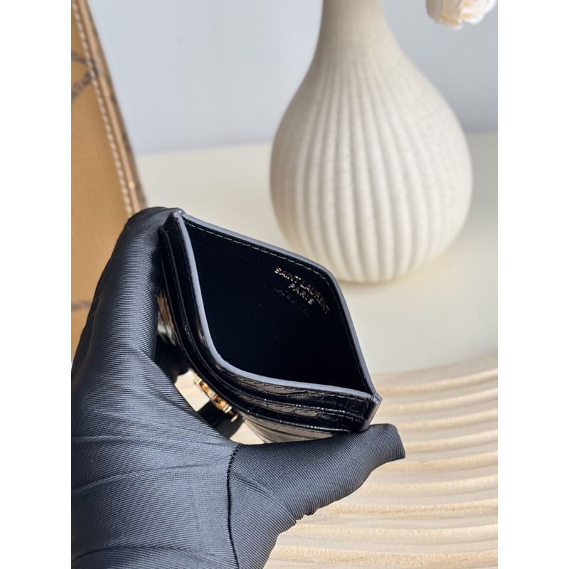 Saint Laurent Calfskin Crocodile Embossed Card Case Black