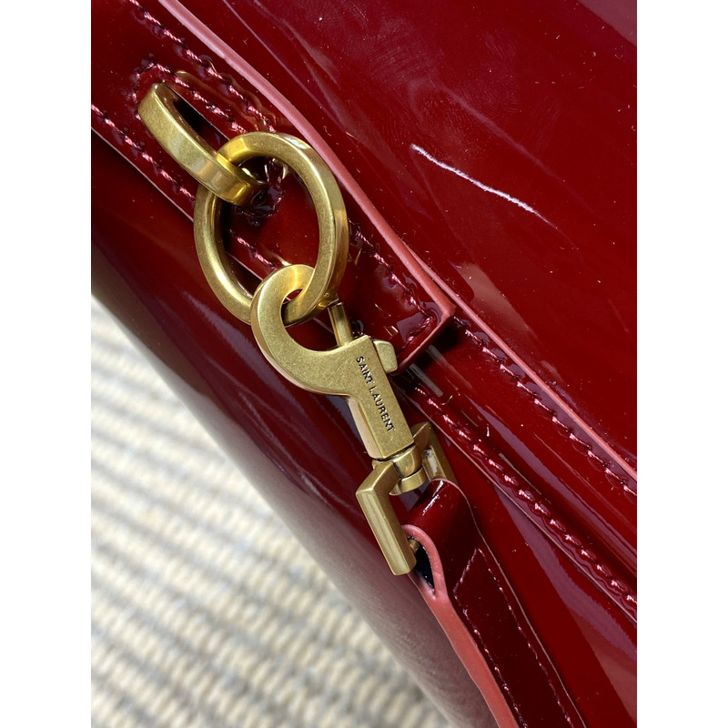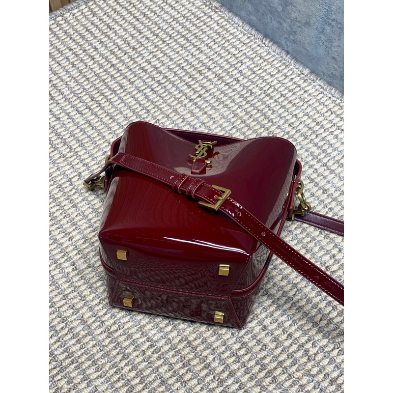 Saint Laurent Le 37 Small Bucket Bag In Patent Leather Burgundy