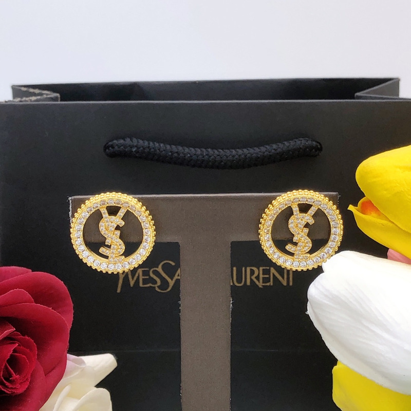 Saint Laurent YSL Logo Crystal-Embellished Earrings In Gold