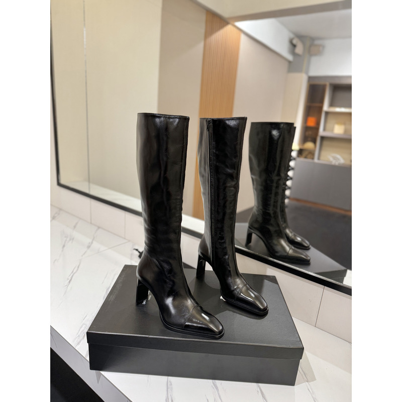 Saint Laurent Black Patent Leather Square-Toe Knee-High Boots