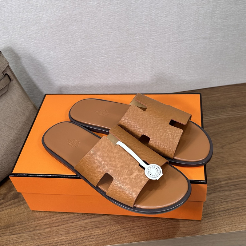Hermes Kazimir Sandal In Dark Grey & Olive Green