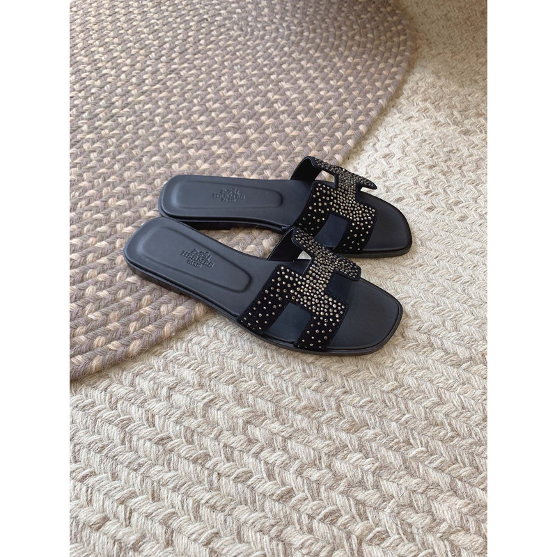 Hermès Oran Sandal In Black Suede And Leather