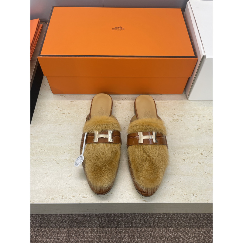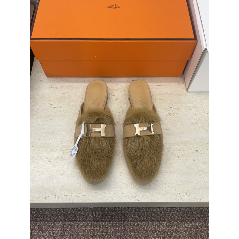 Hermes Key Mule Fur Brown