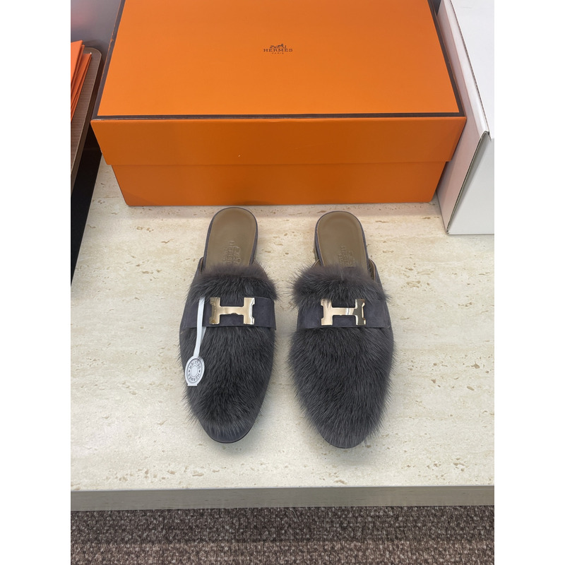 Hermes Key Mule Fur Grey