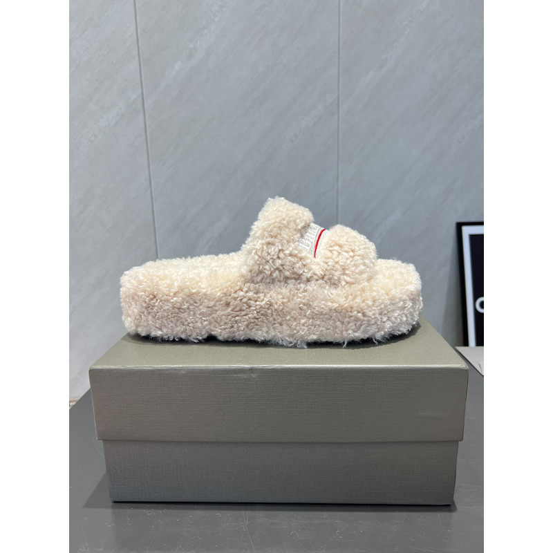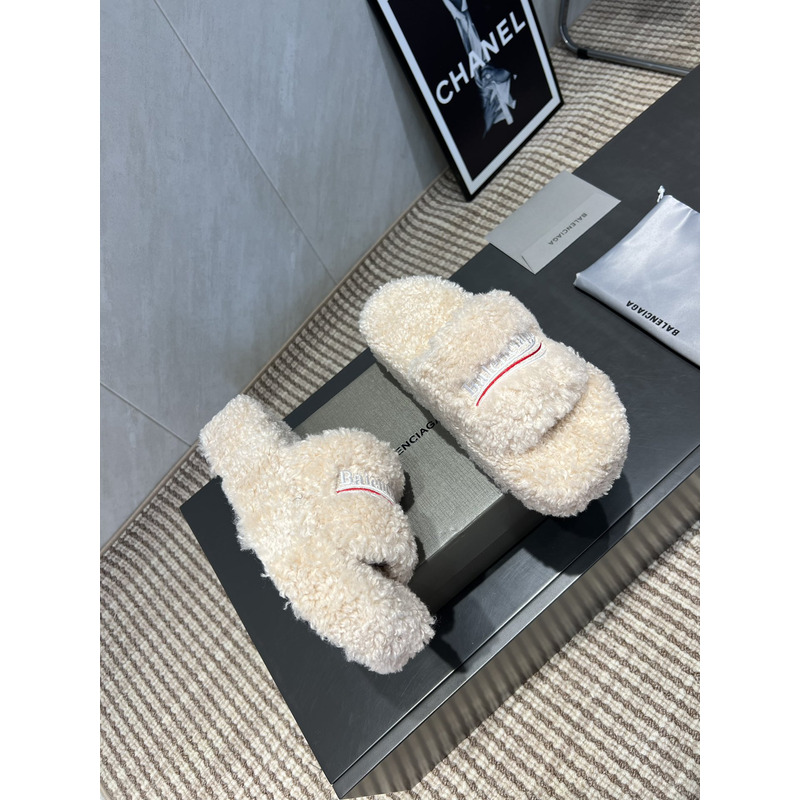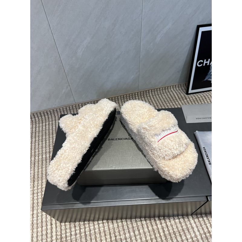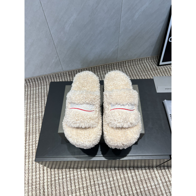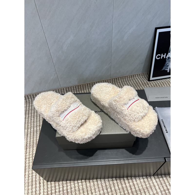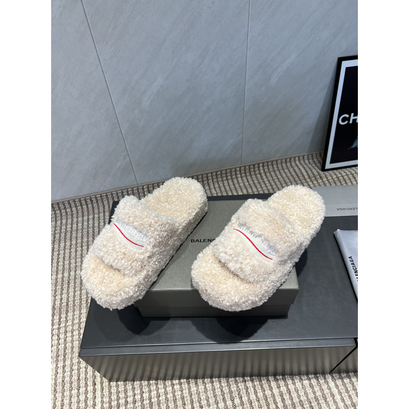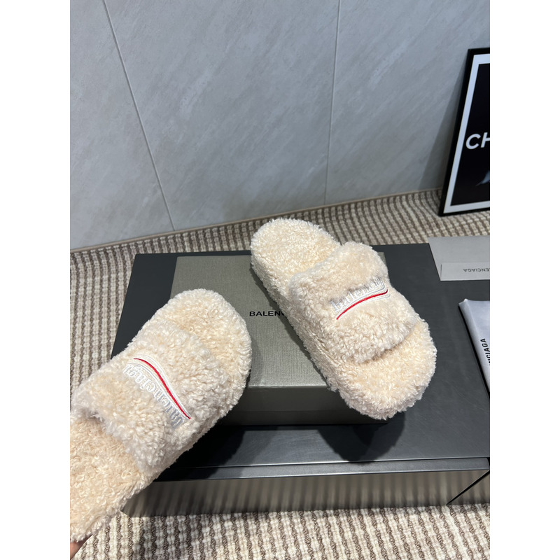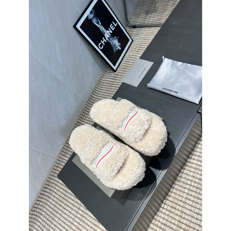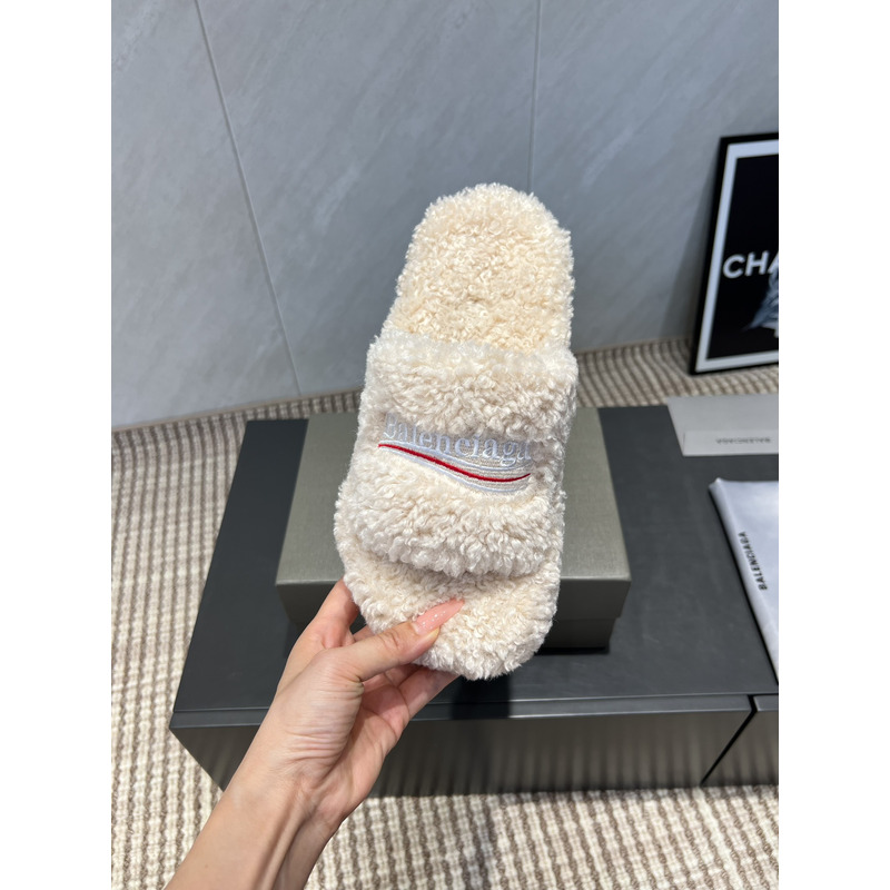 Balenciaga Furry Slide Sandal In White