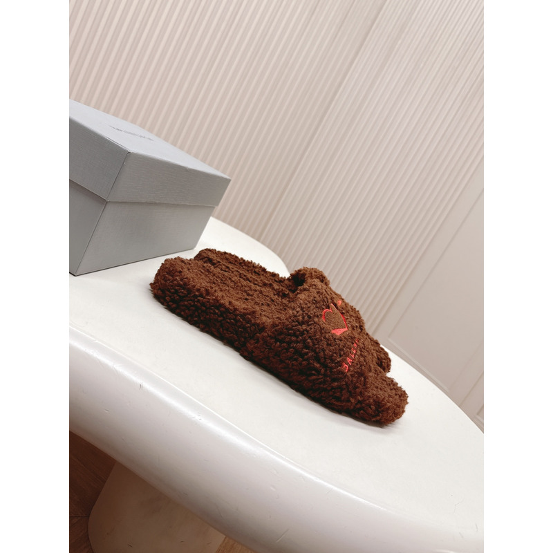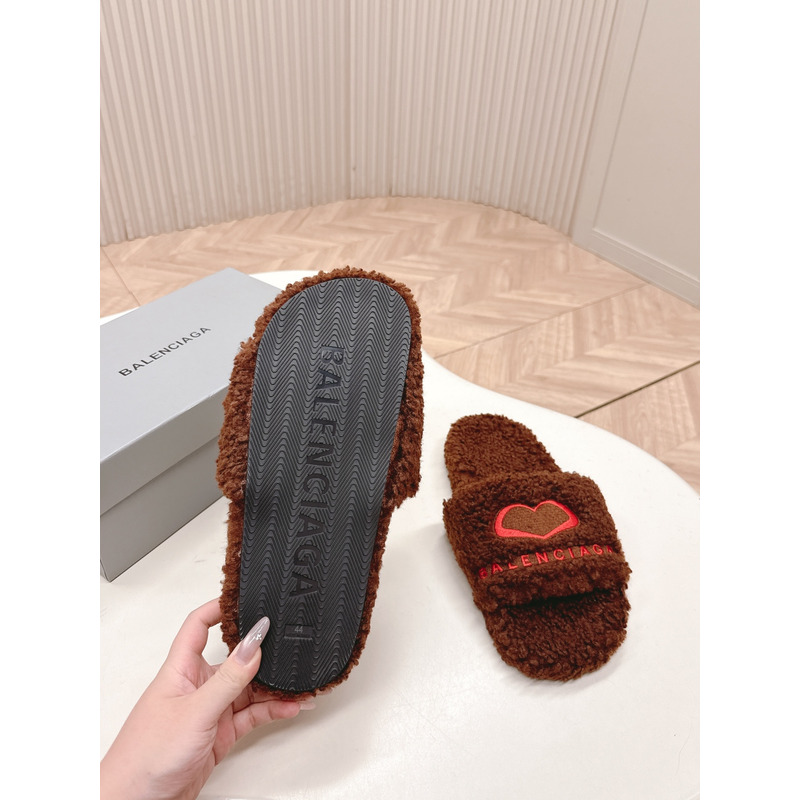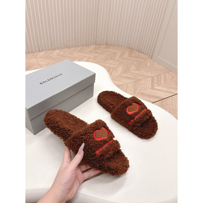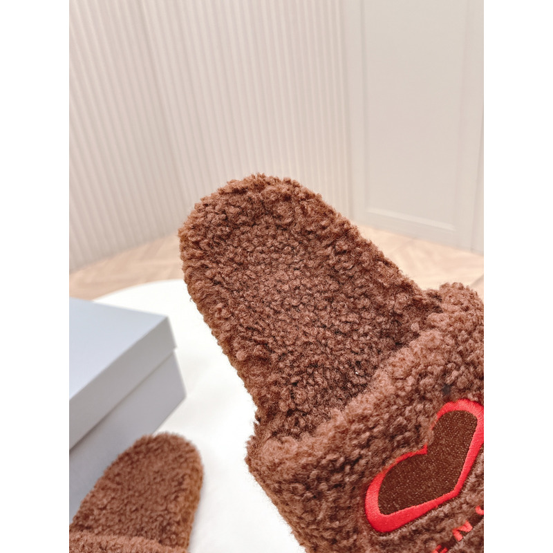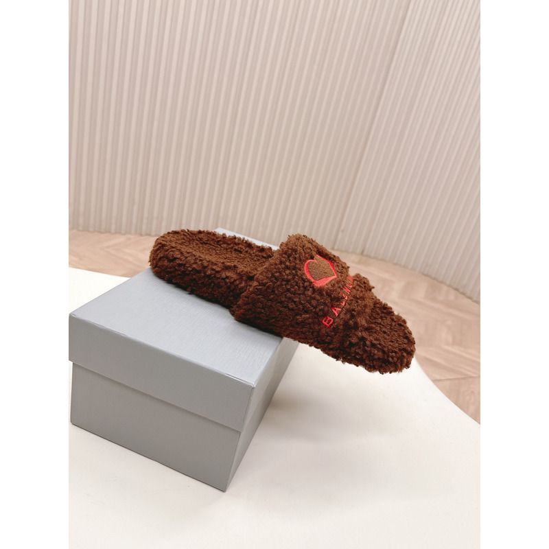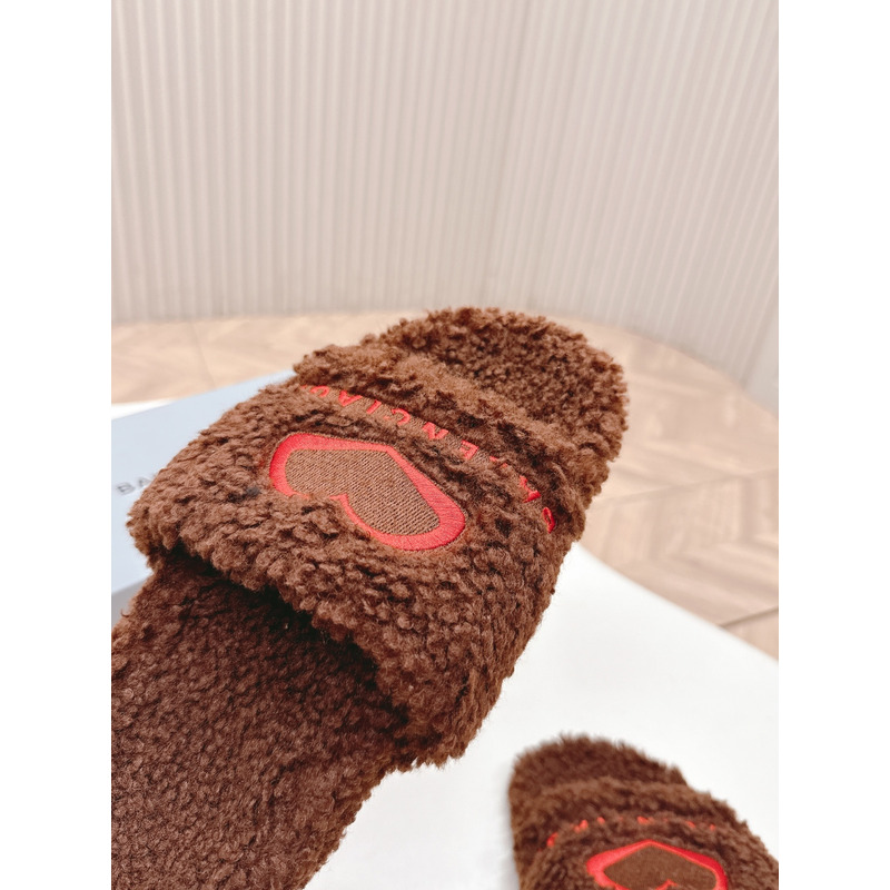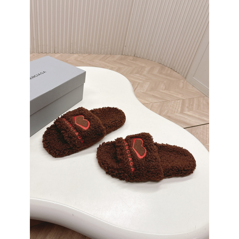 Balenciaga Heart Teddy Slide Sandals In Brown/Red