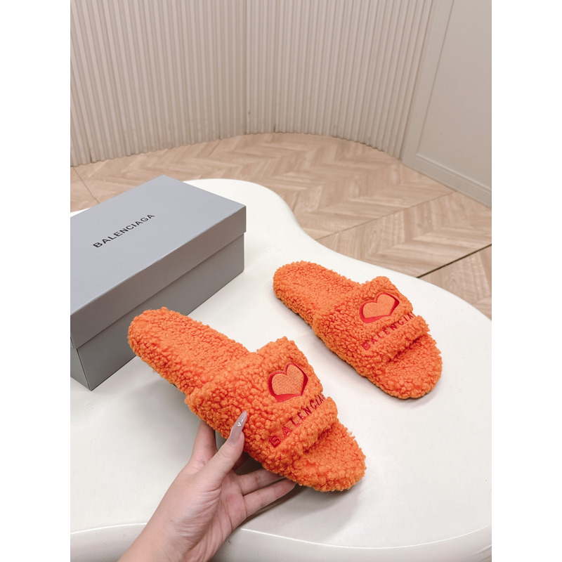 Balenciaga Heart Teddy Slide Sandals In Orange/Red