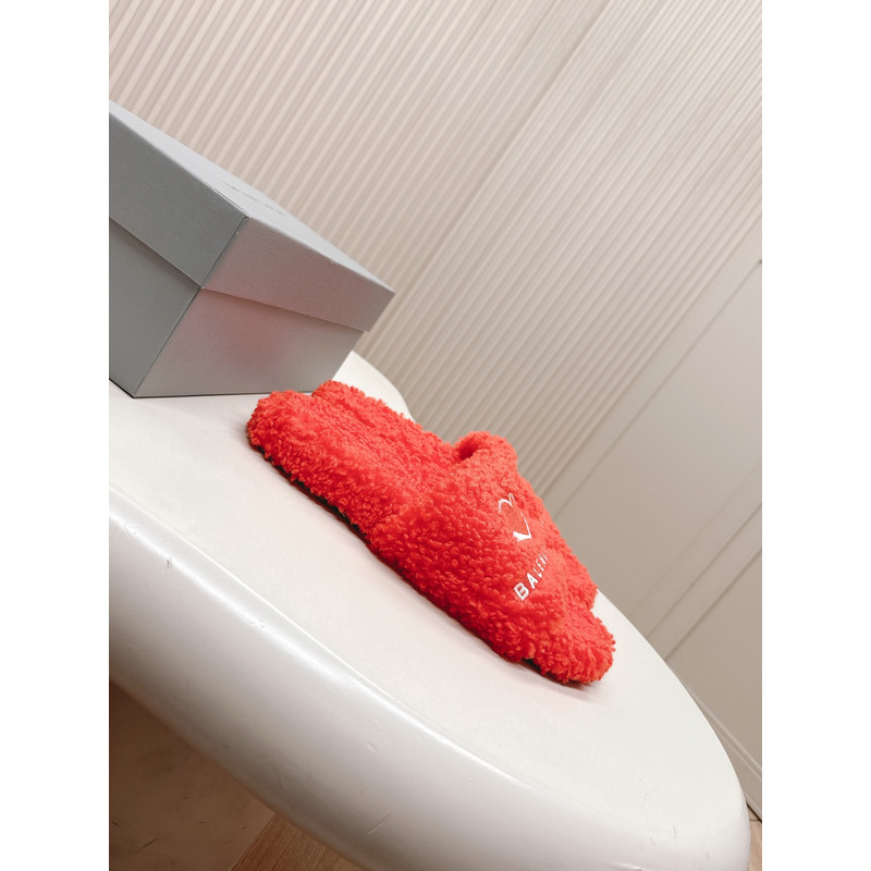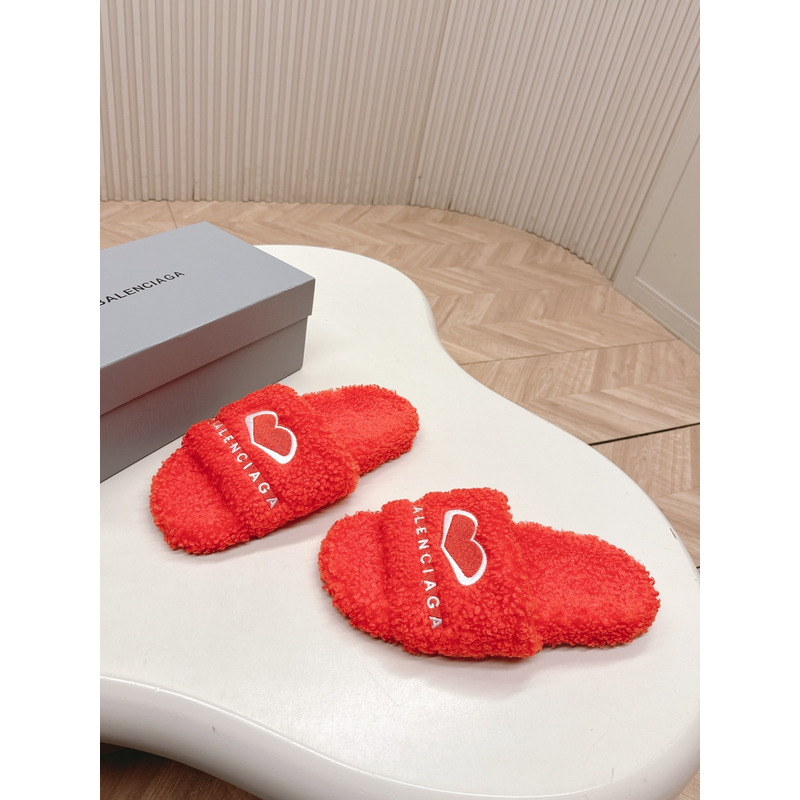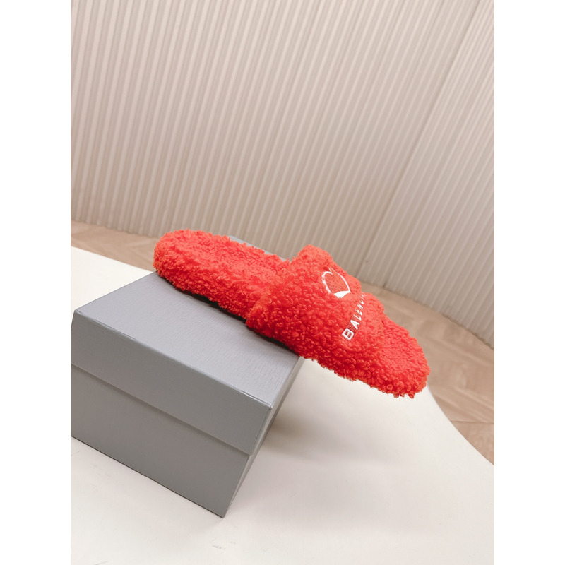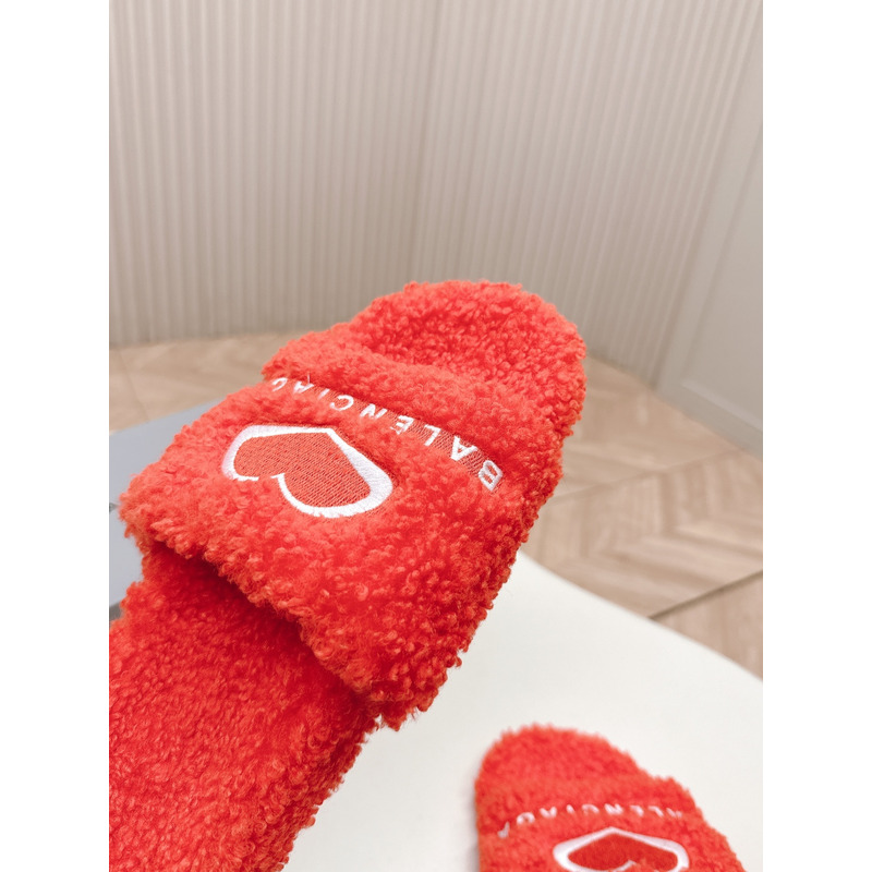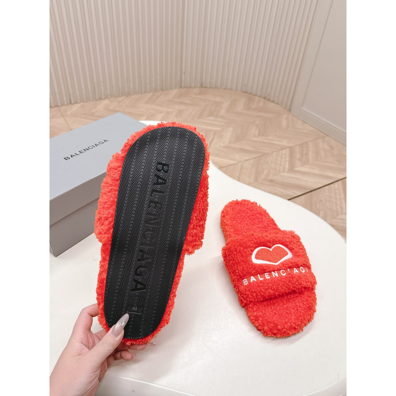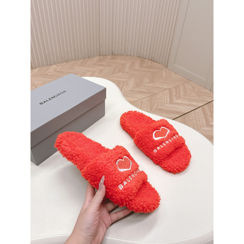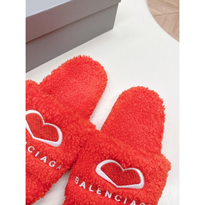 Balenciaga Heart Teddy Slide Sandals In Orange/White