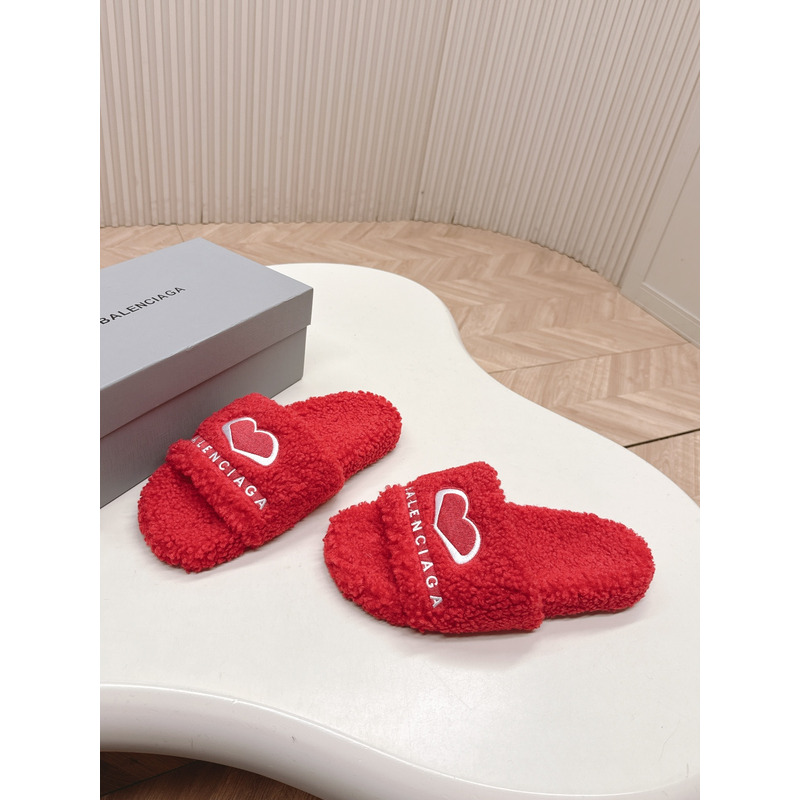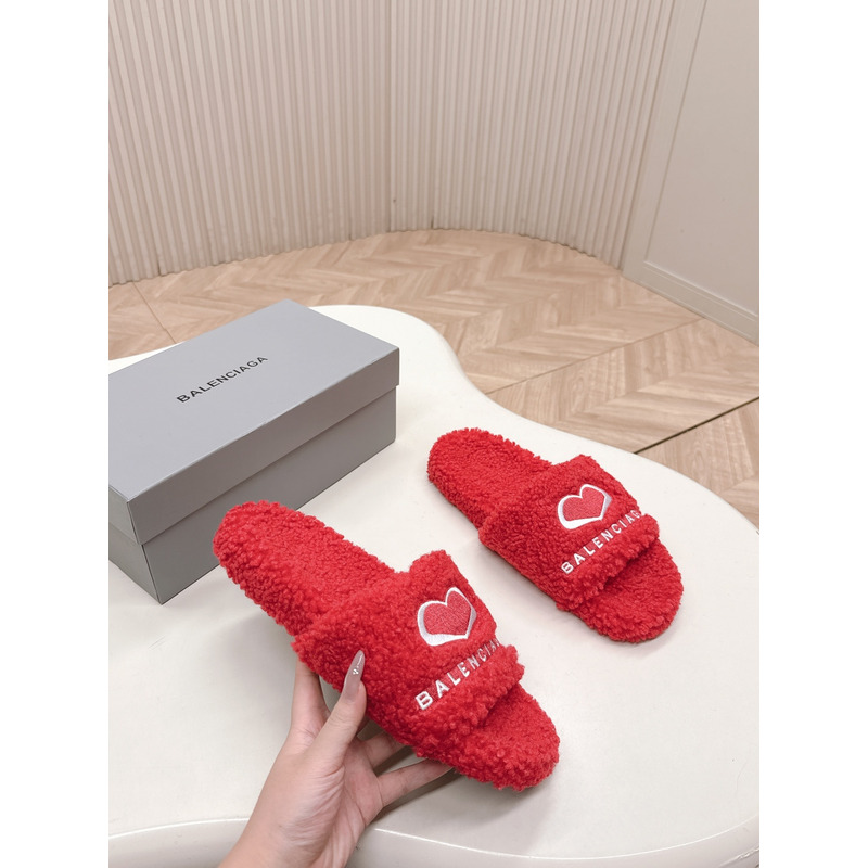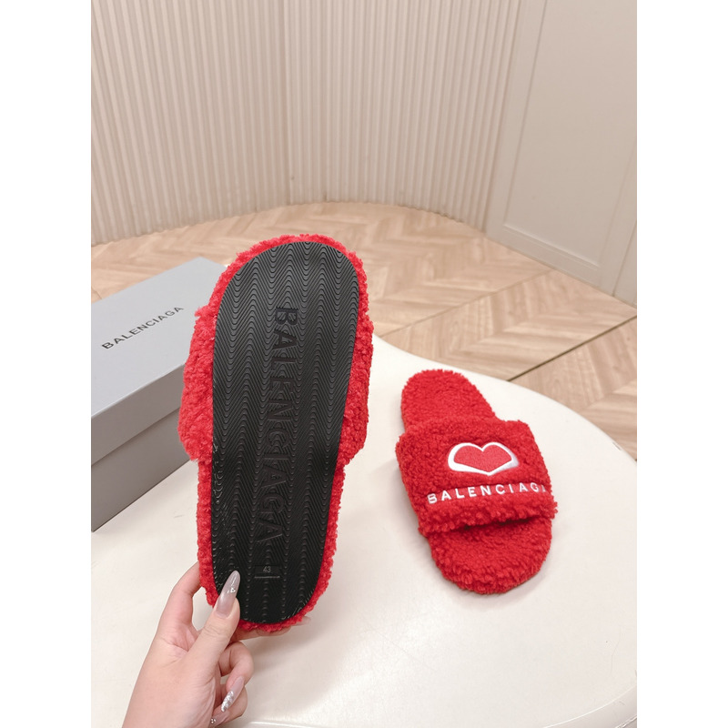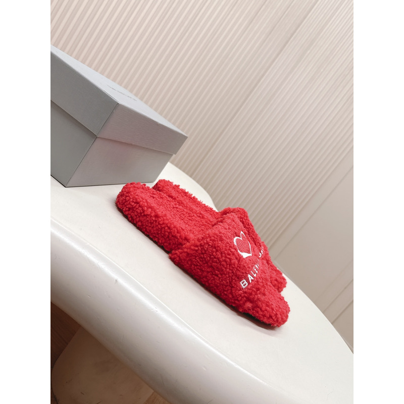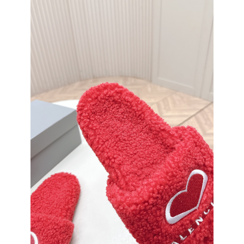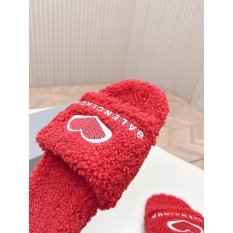 Balenciaga Heart Teddy Slide Sandals In Red/White