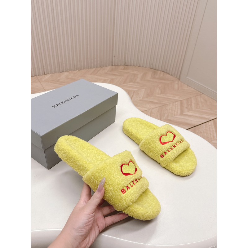Balenciaga Heart Teddy Slide Sandals In Yellow/Red