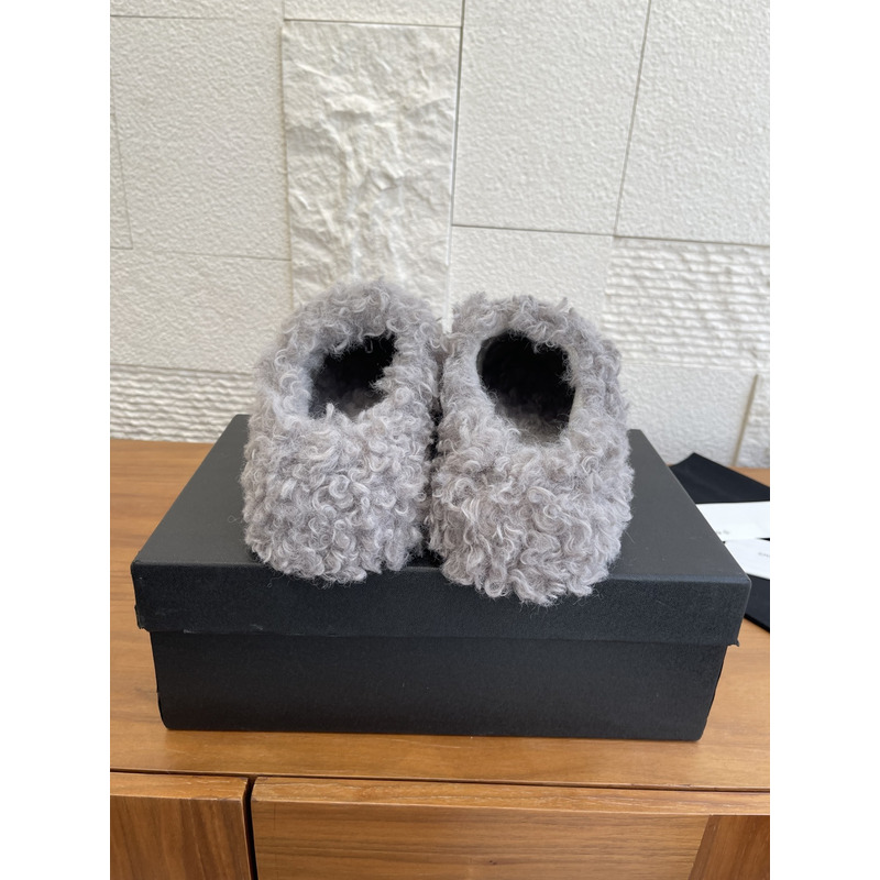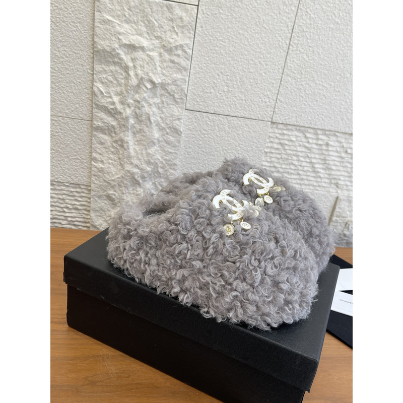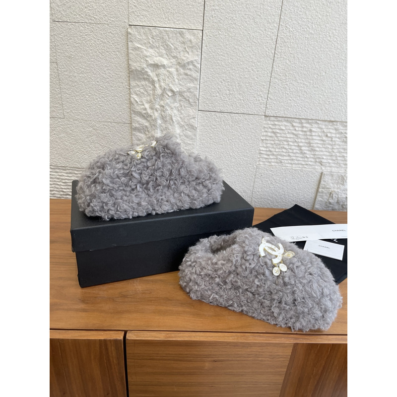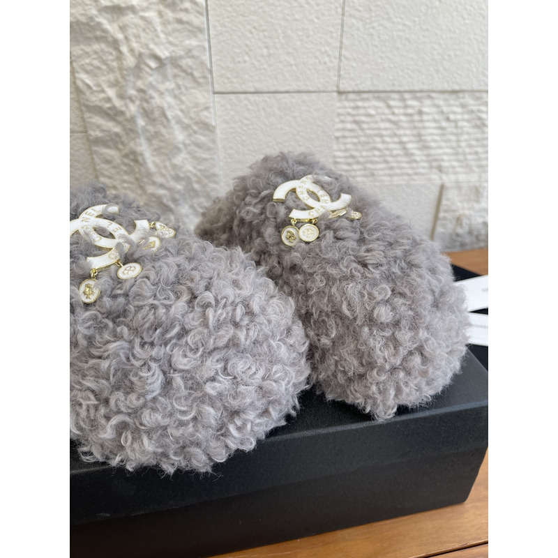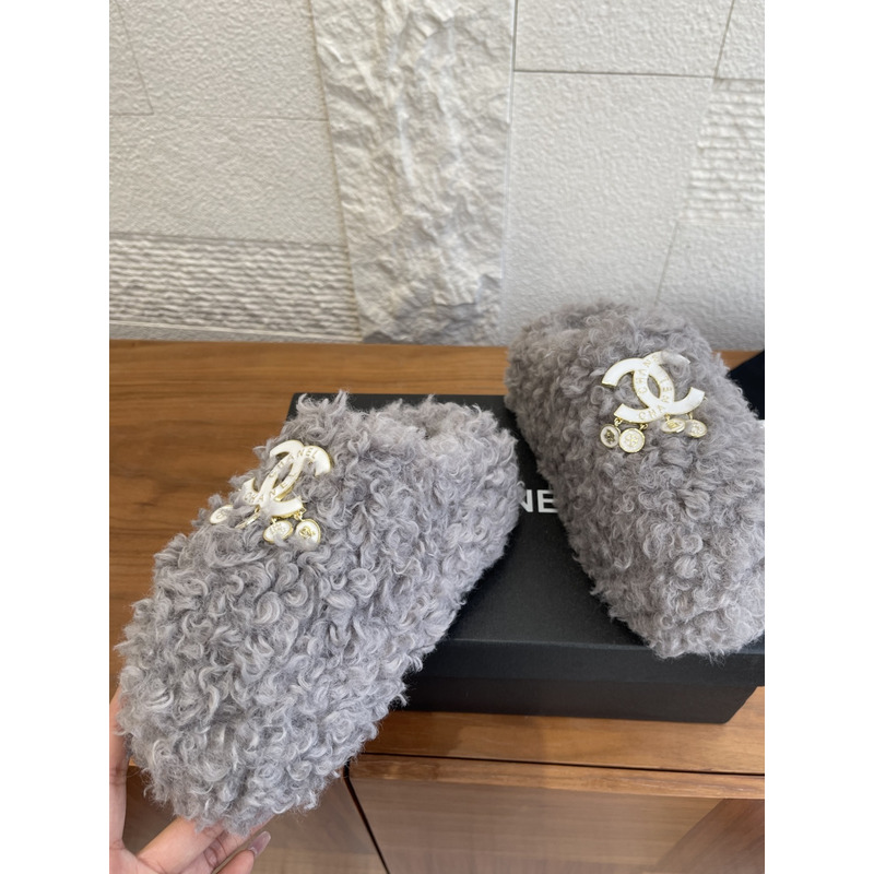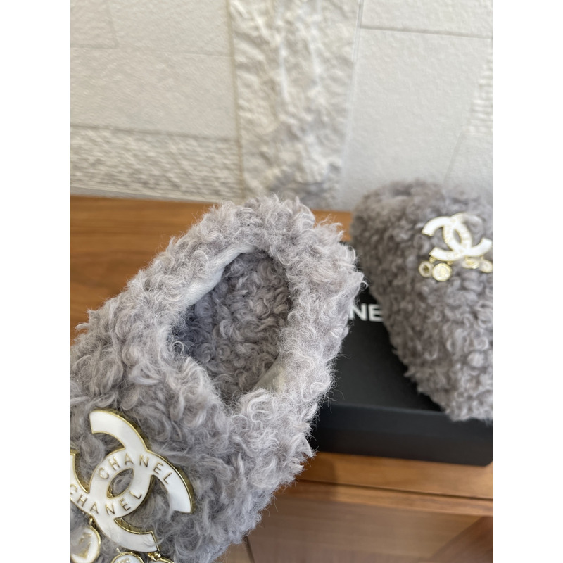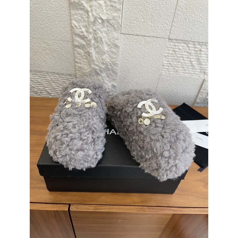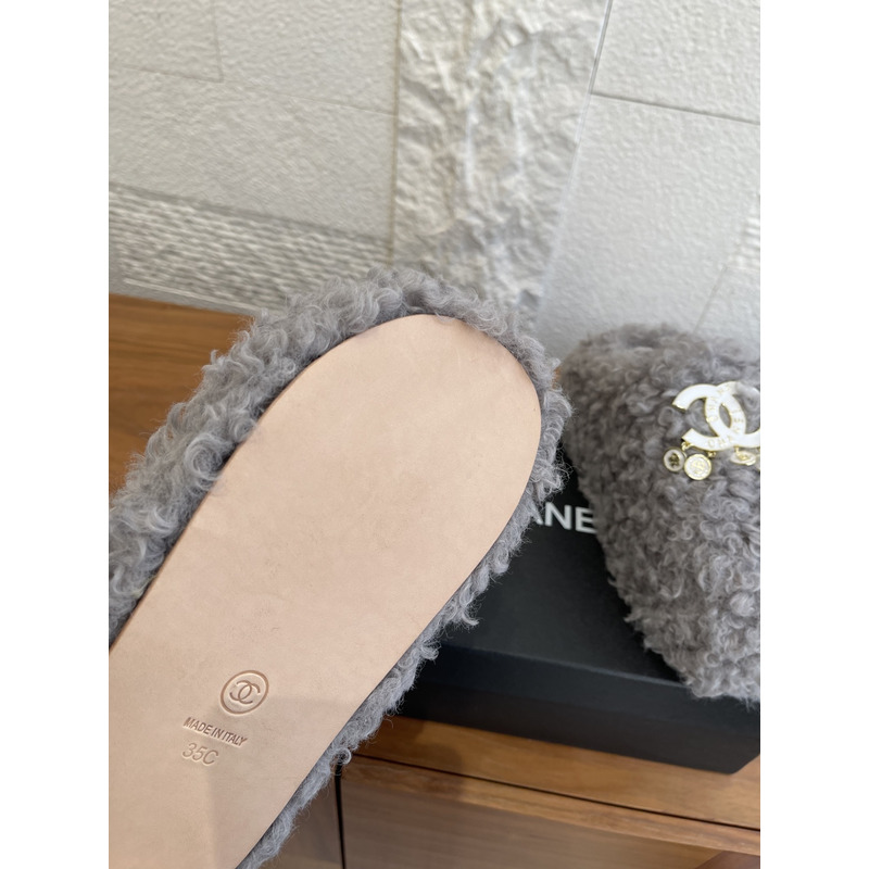Chanel Fur Slippers In Light Grey
