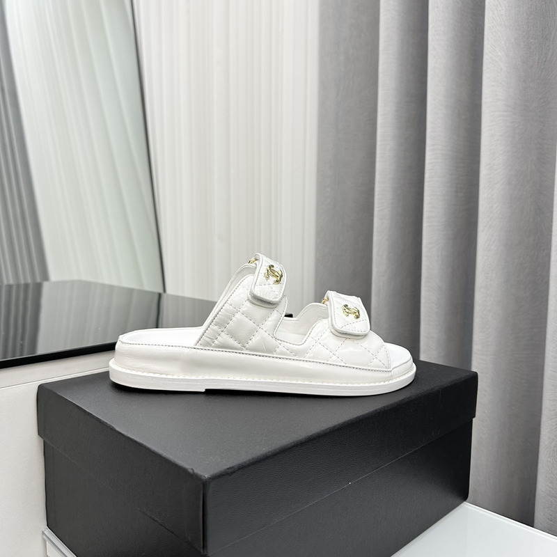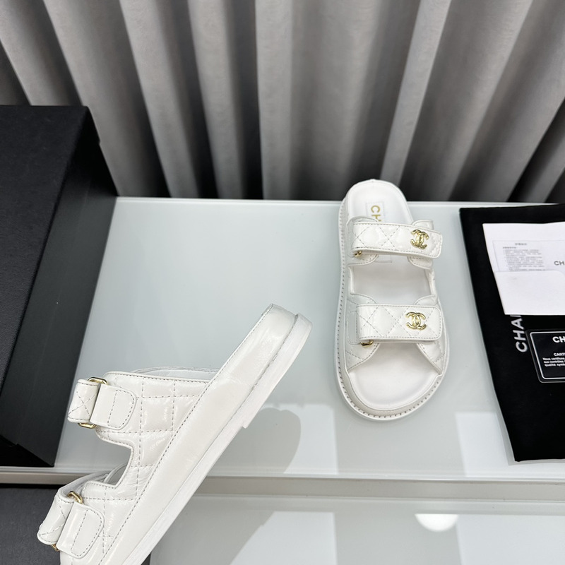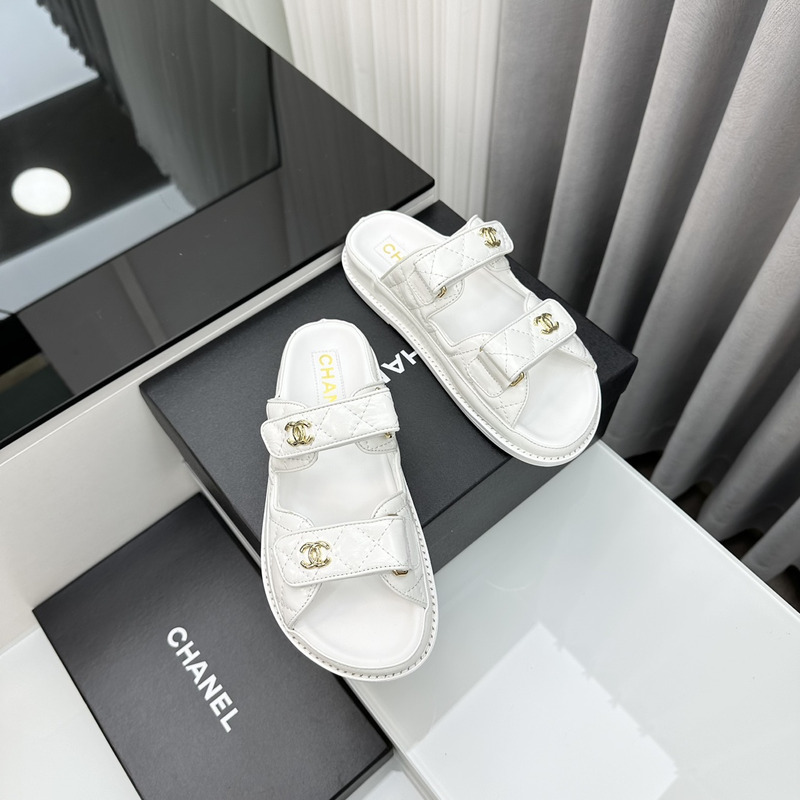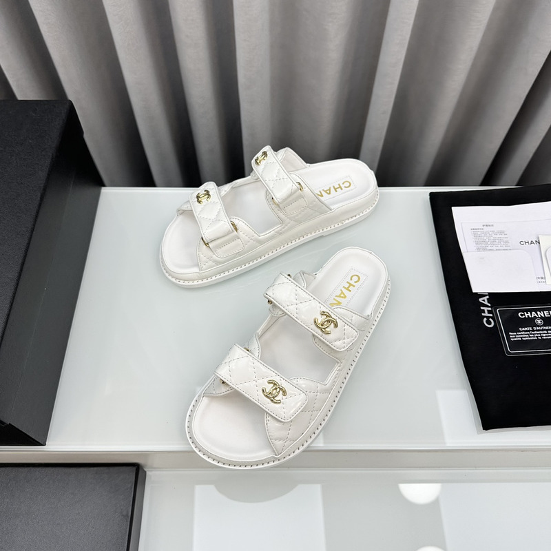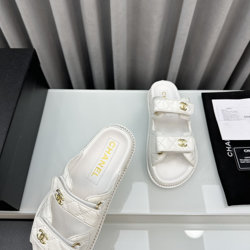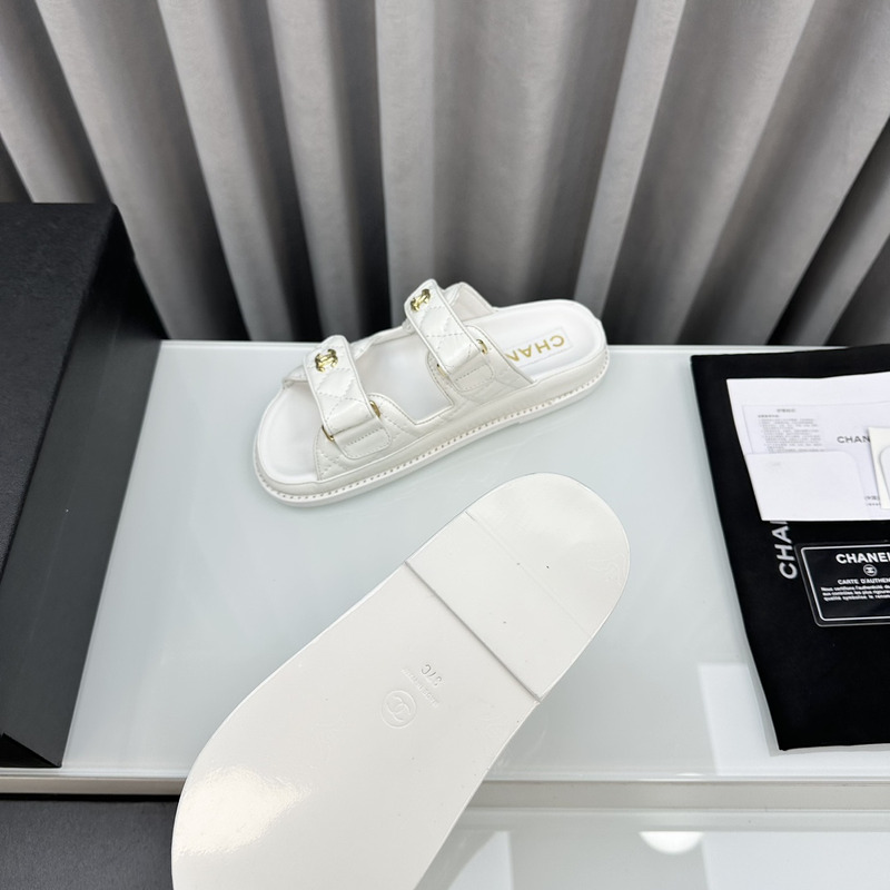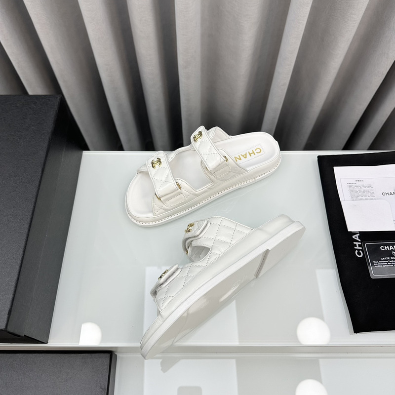 Chanel Gold CC Logo Lambskin Sandals In Ivory
