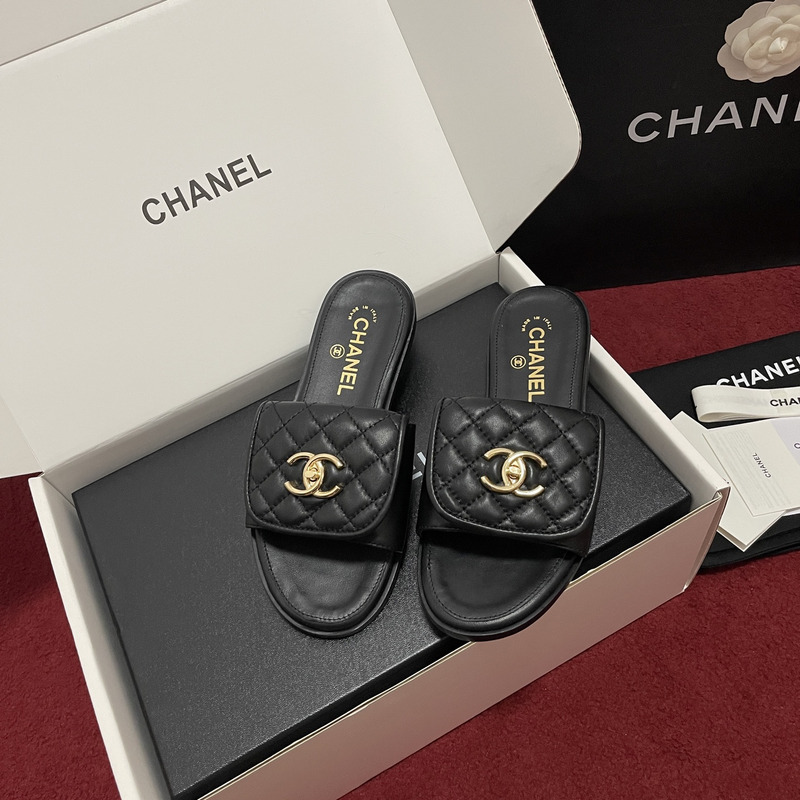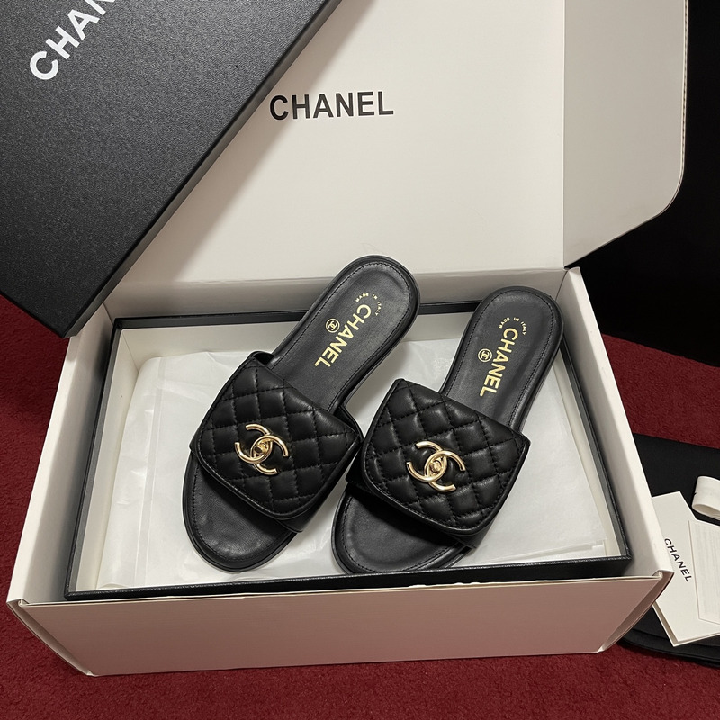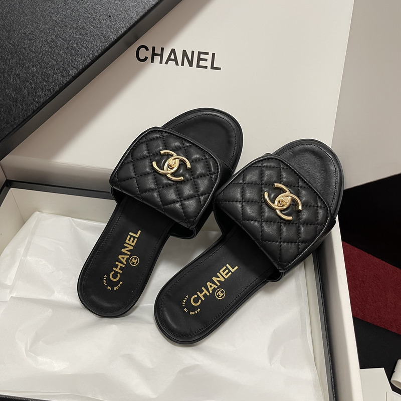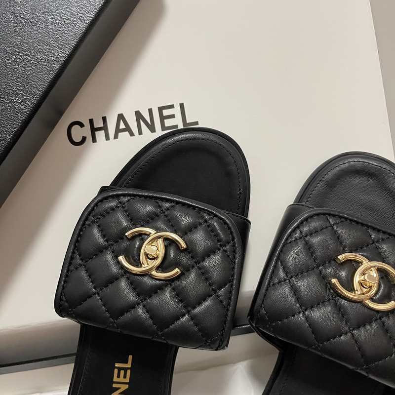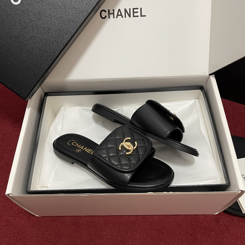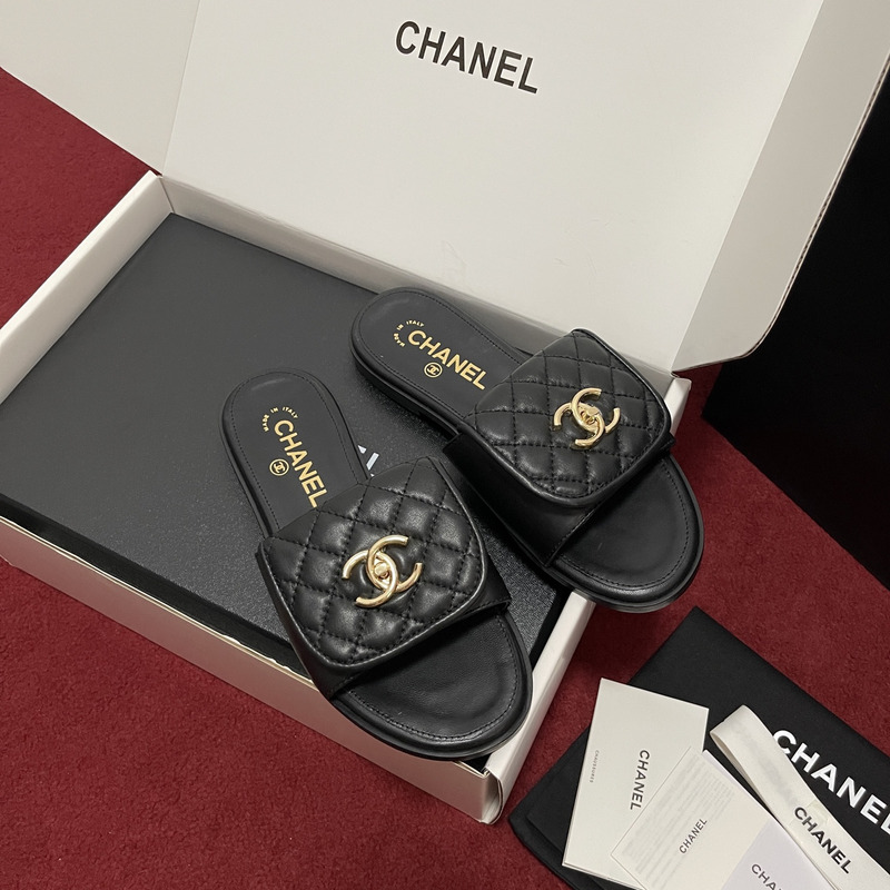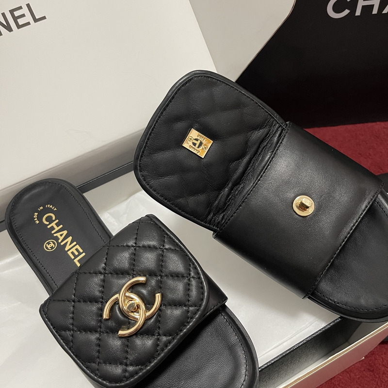 Chanel Lambskin Quilted CC Turnlock Flat Sandals Black
