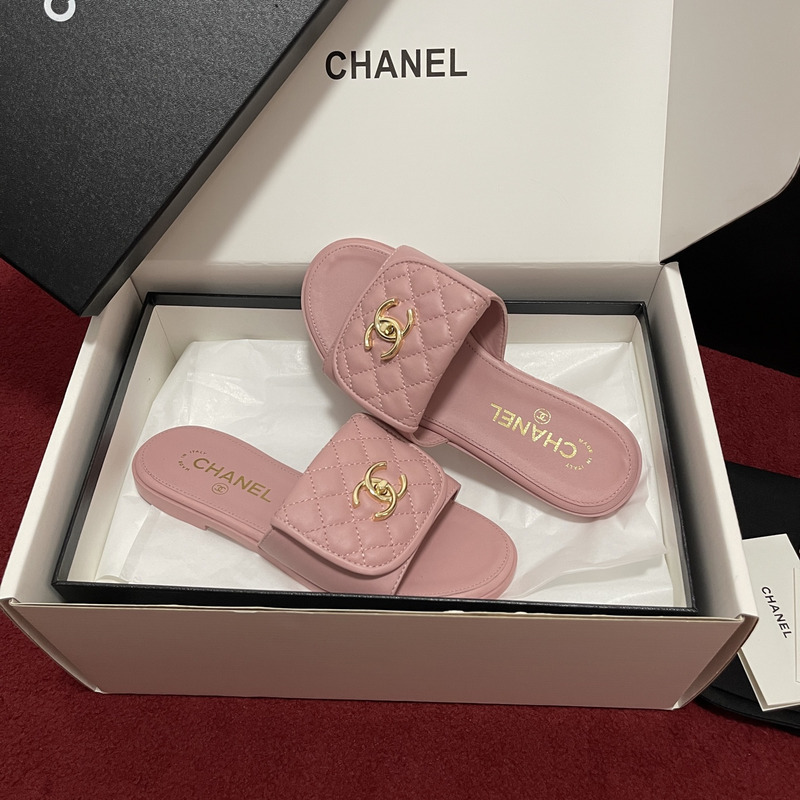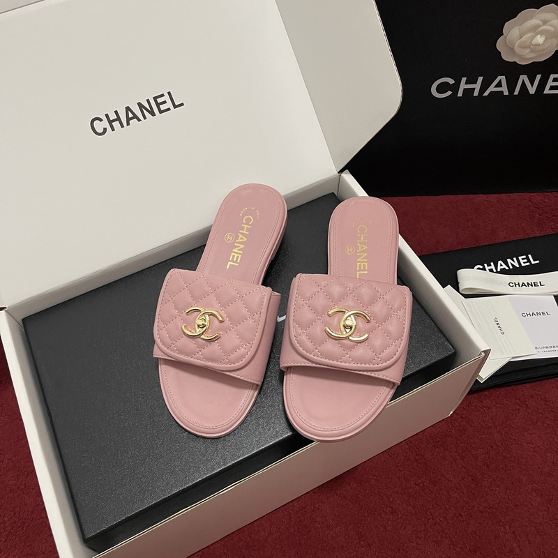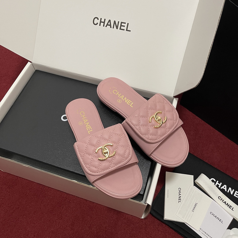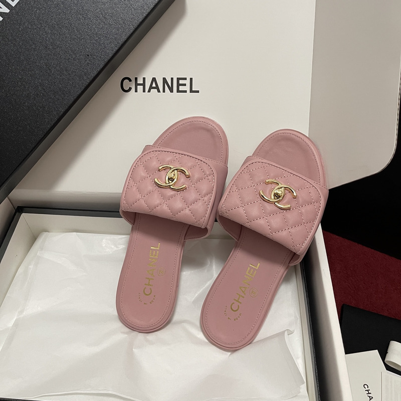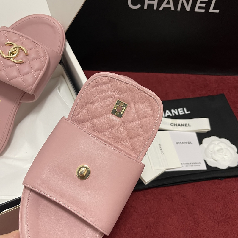 Chanel Lambskin Quilted CC Turnlock Flat Sandals Pink
