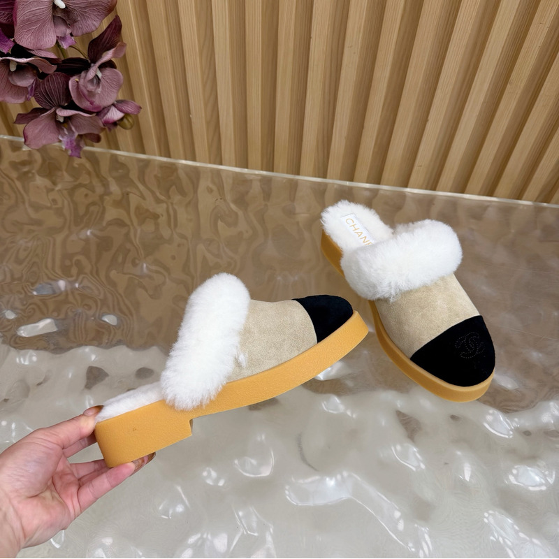 Chanel Sandals In Sheepskin Dark Beige & Black
