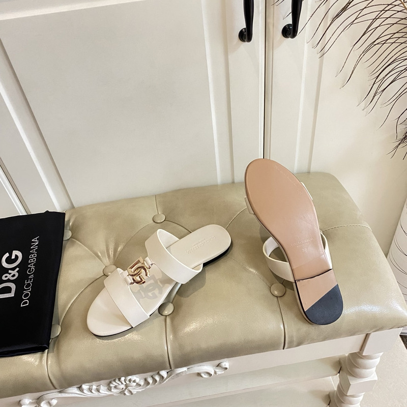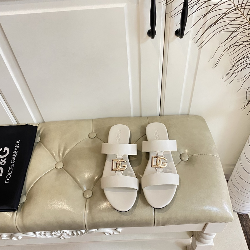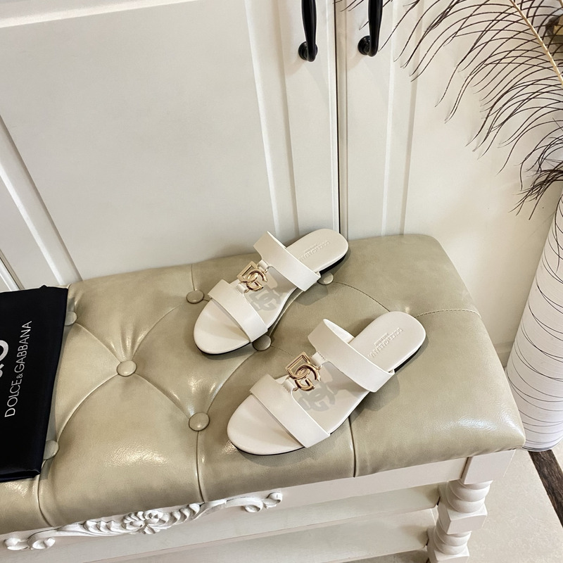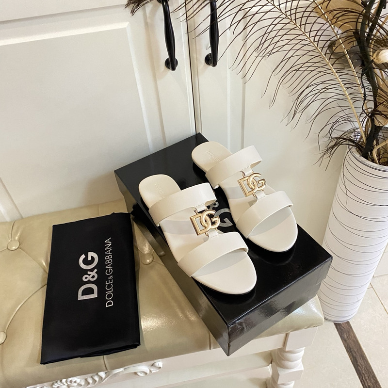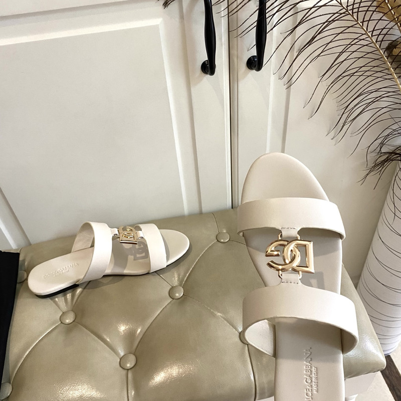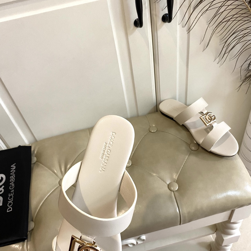 Dolce & Gabbana Calfskin Sliders With DG Logo In Off-White