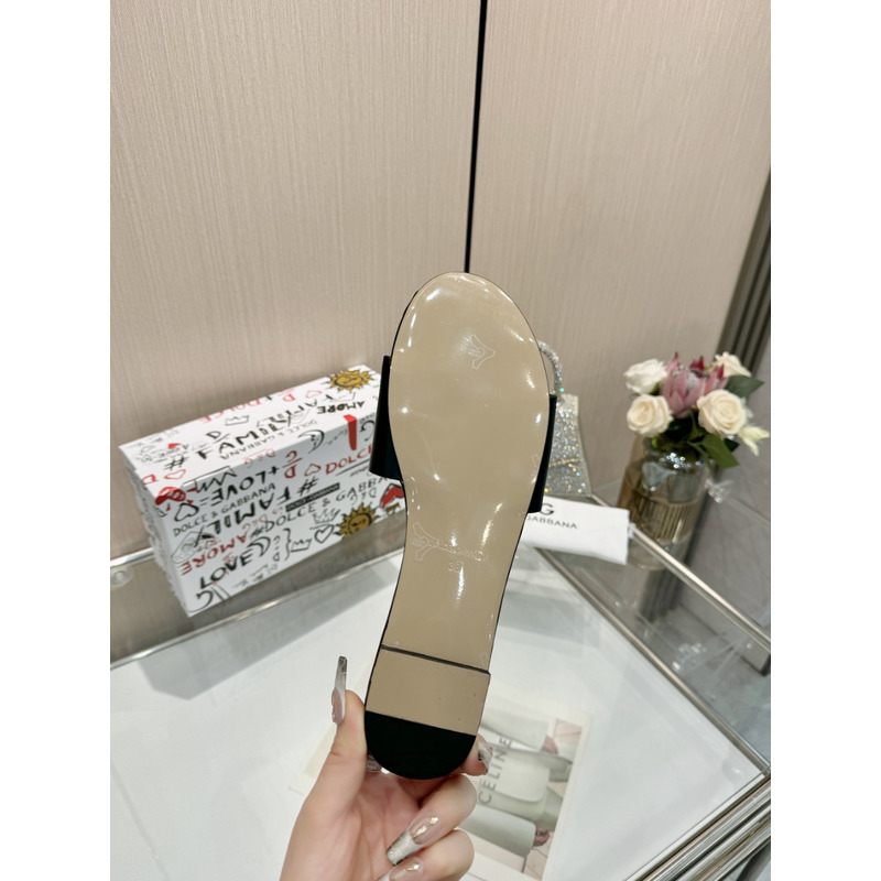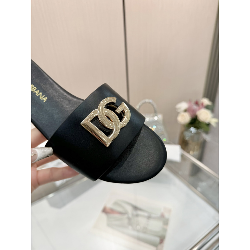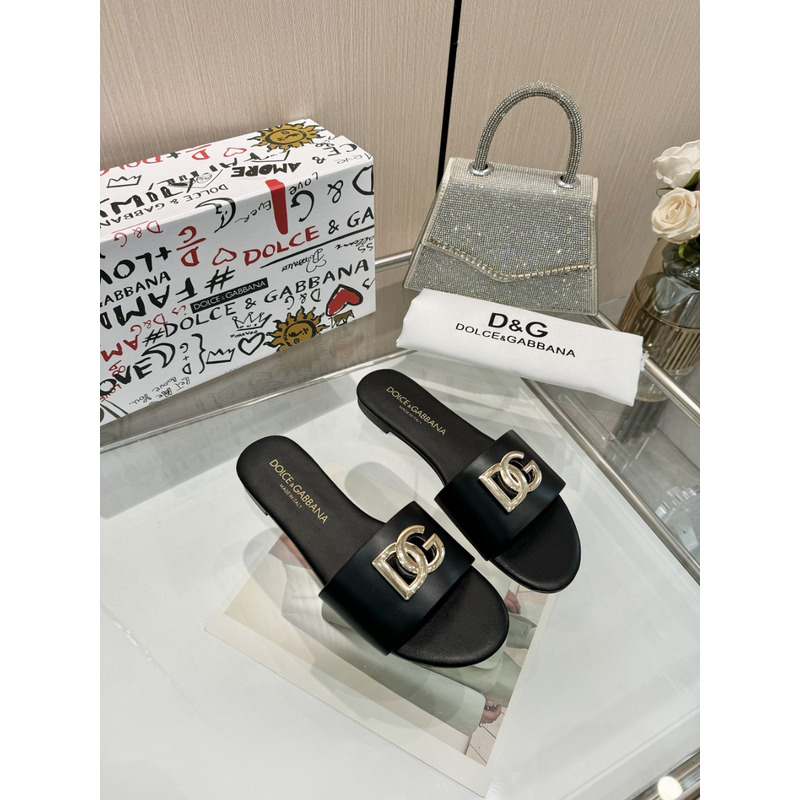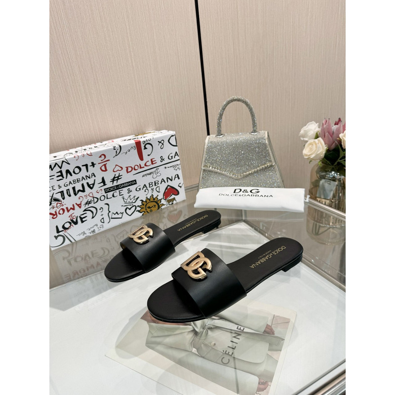 Dolce & Gabbana Flat Slippers In Calfskin With DG Logo Black