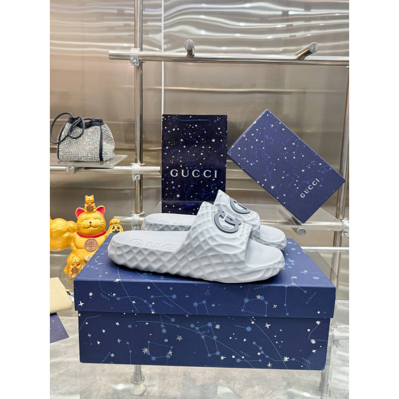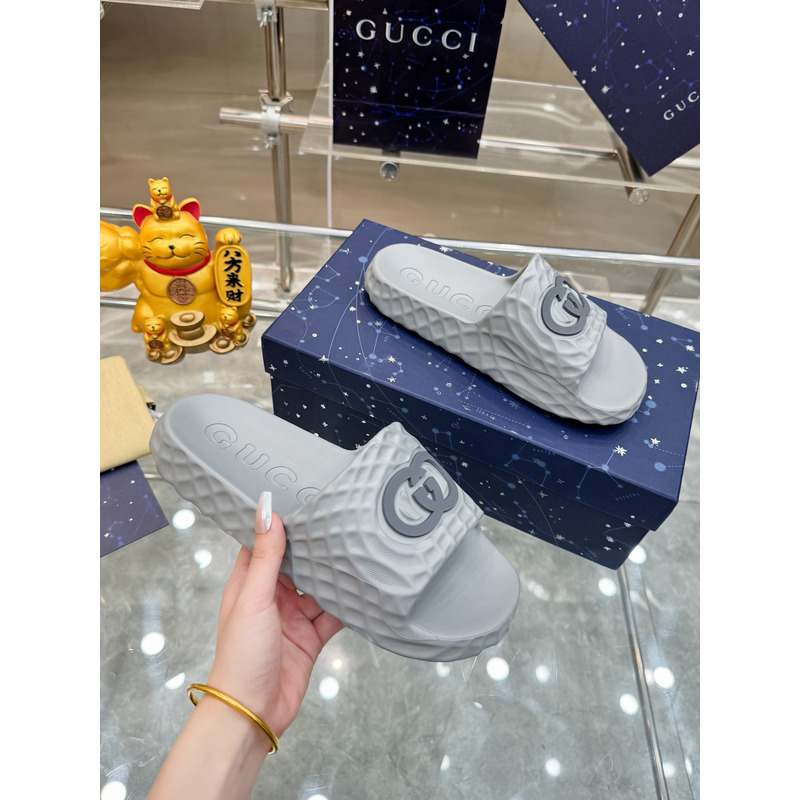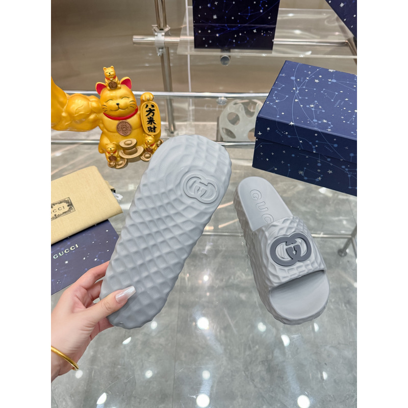 Gucci Interlocking Logo Ripple Sole Slide In Grey