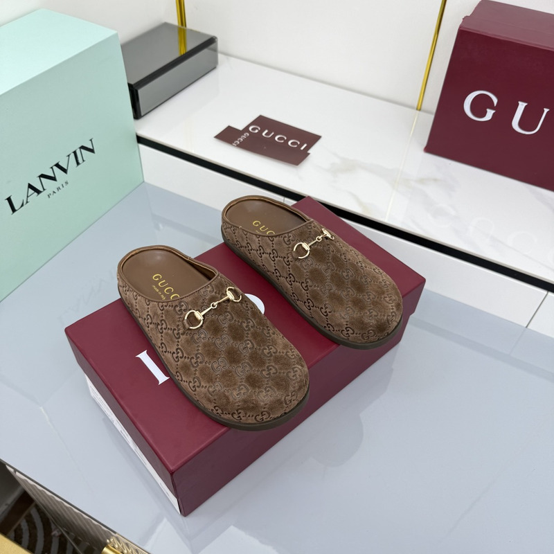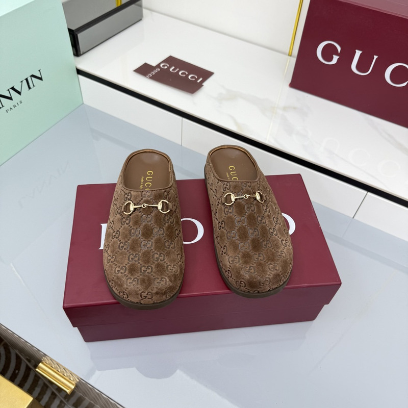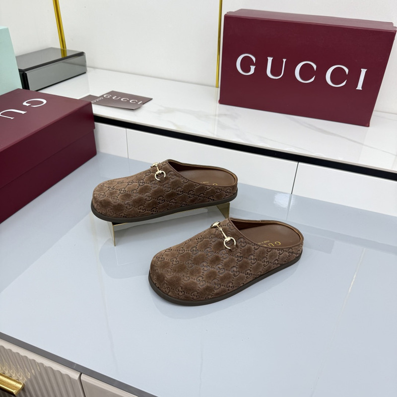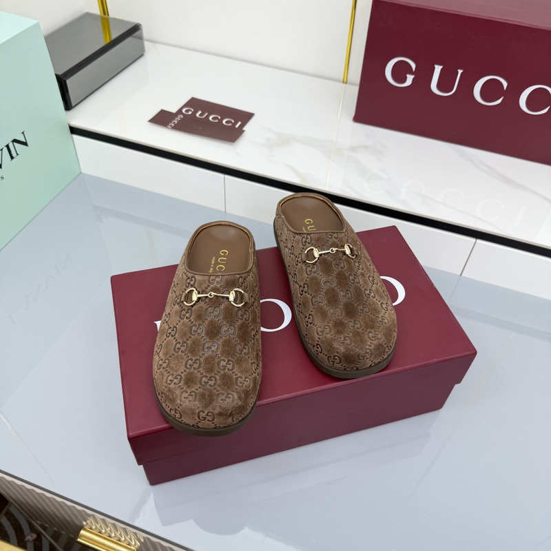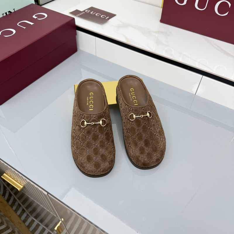 Gucci Mule With Horsebit Dark Brown GG Suede