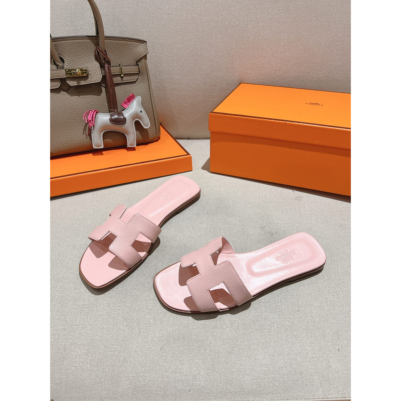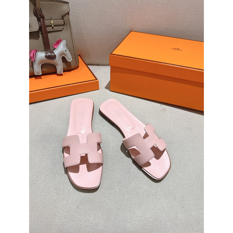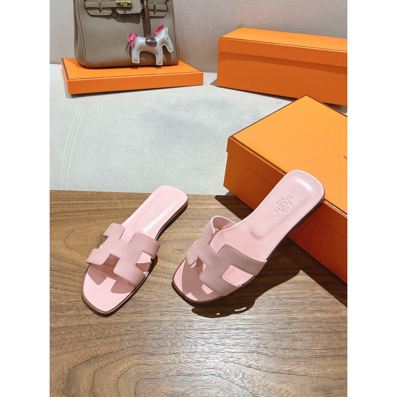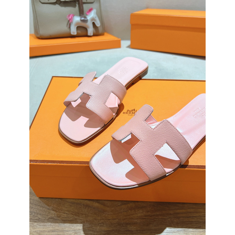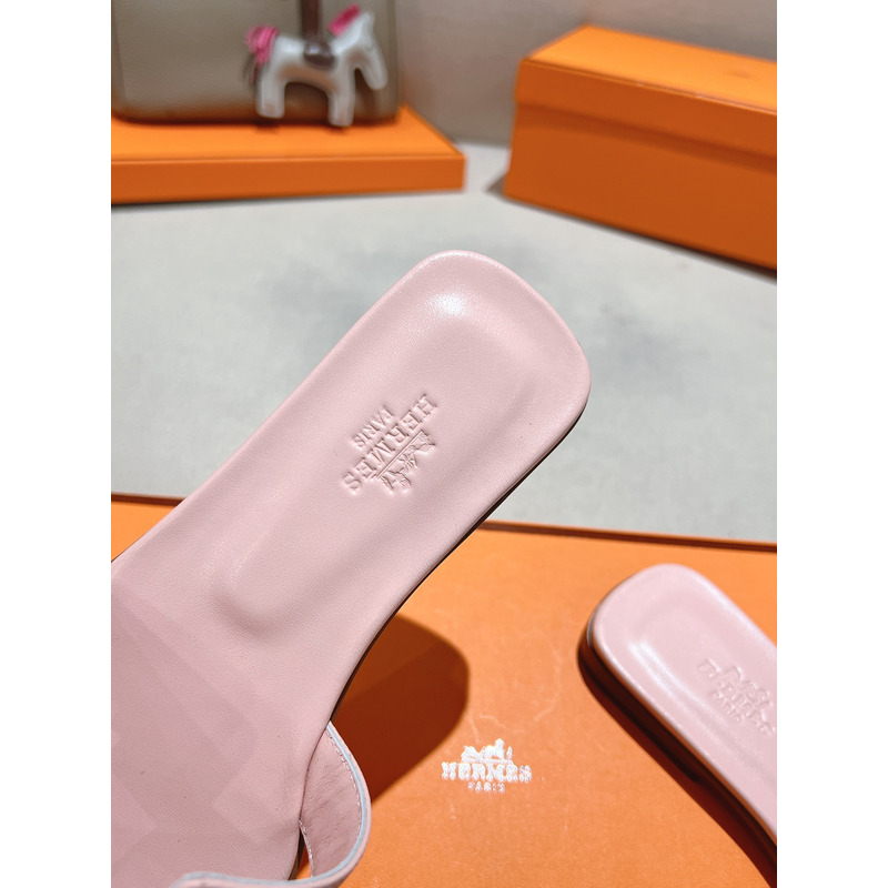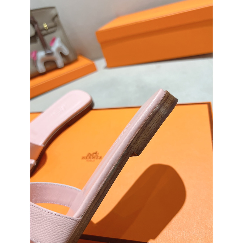 Hermes Oran Leather Sandal In Light Pink