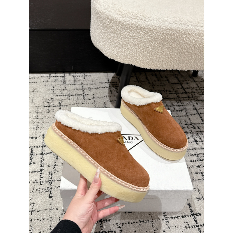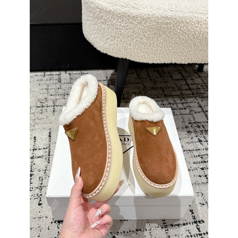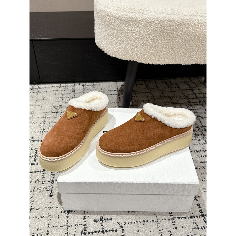 Prada Suede Slippers In Cinnamon Brown