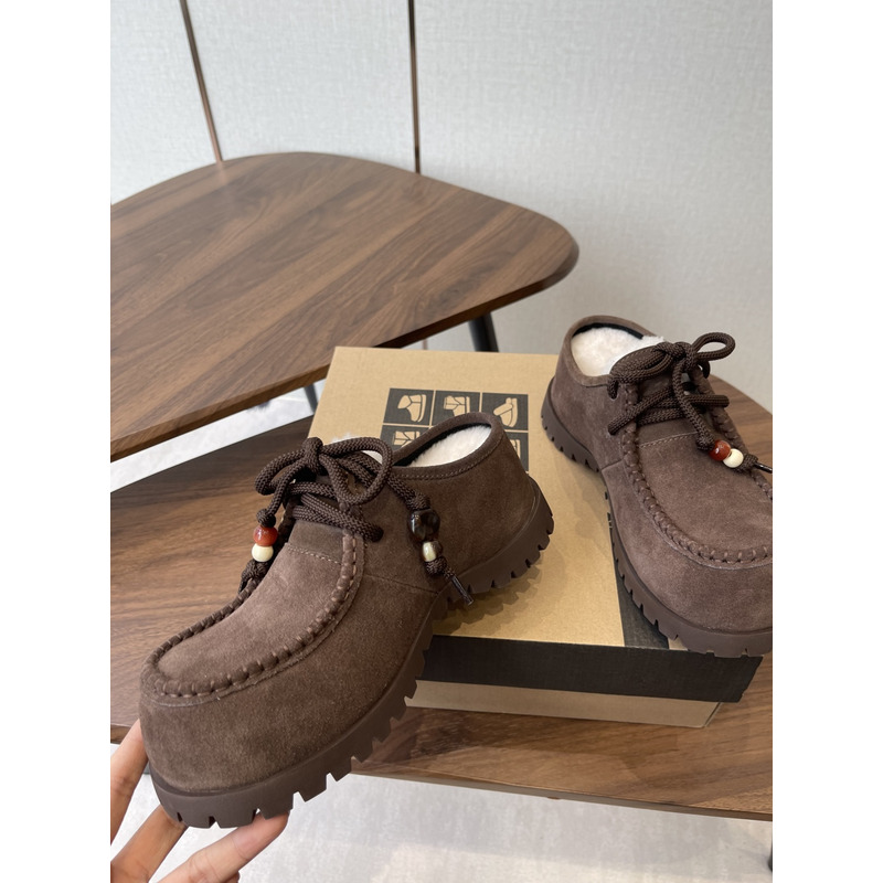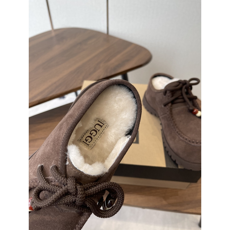 UGG Dark Brown Suede Lace-up Moccasin Slipper