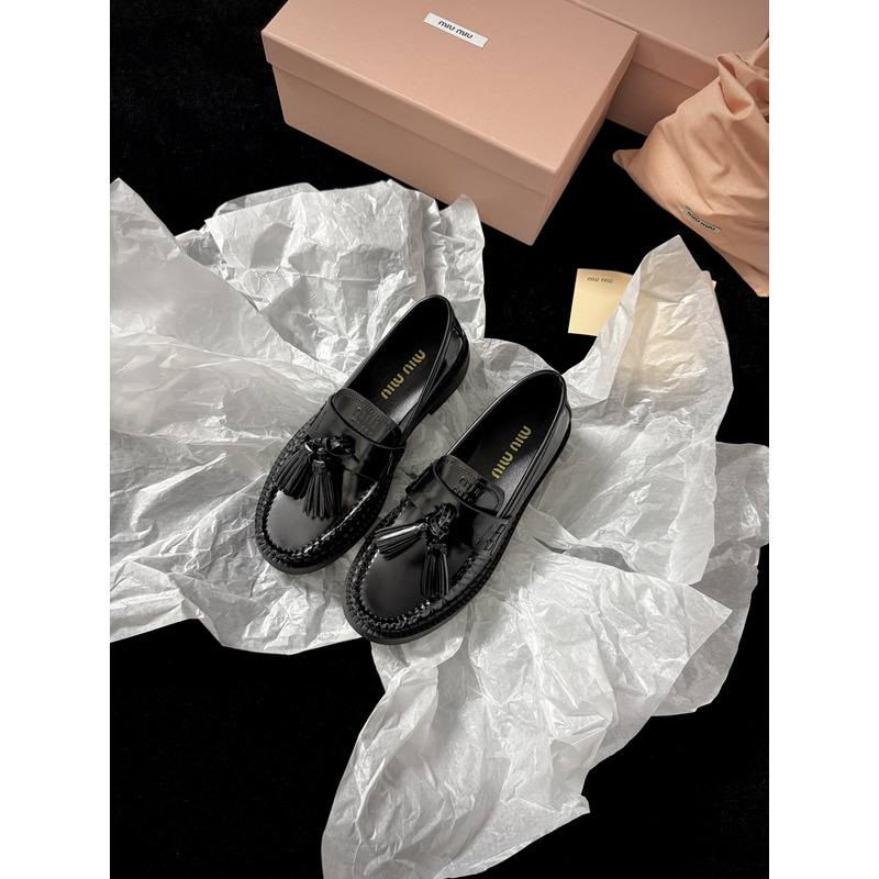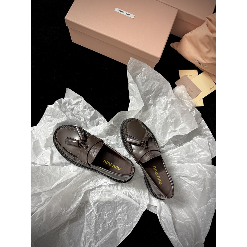 Miu Miu Tassel Loafers In Polished Leather Brown