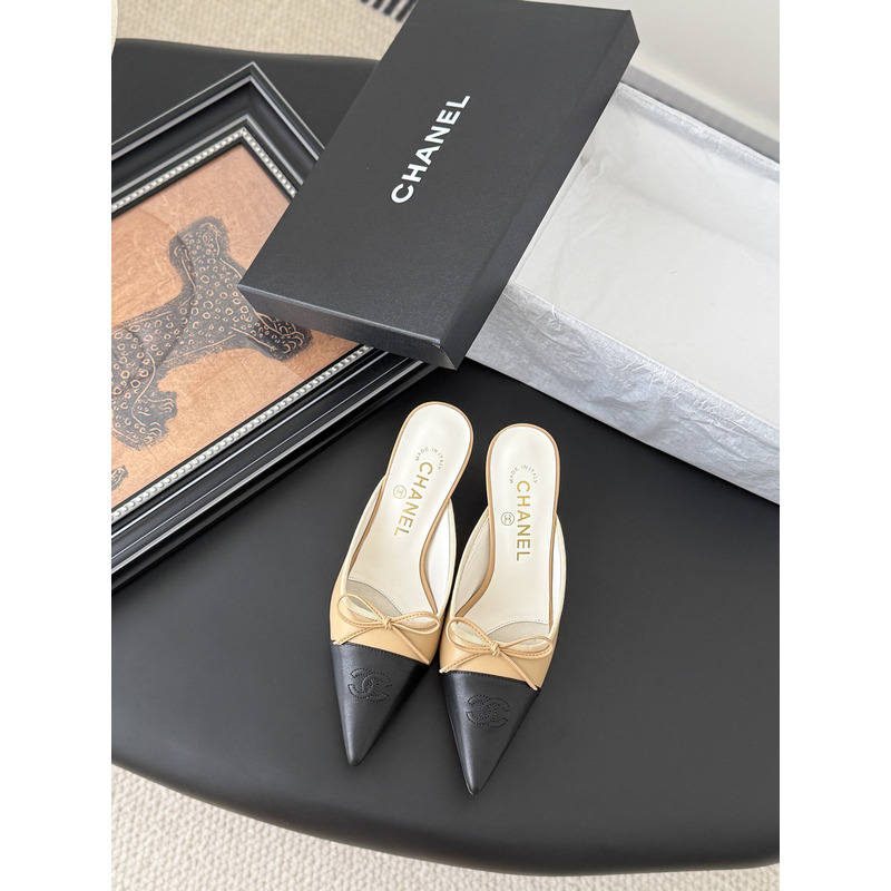 Chanel Beige/Black Leather Bow CC Cap Toe Pointed Pumps
