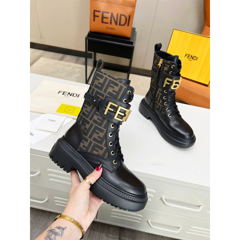 Fendi Vitello Fabric Jacquard FF Fendigraphy Biker Boots