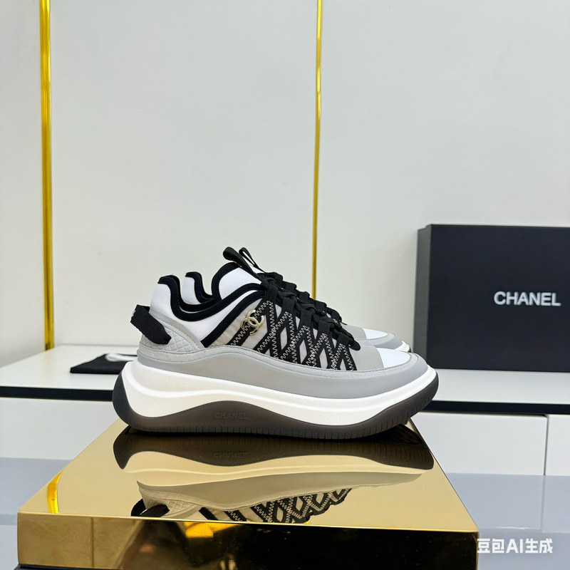 Chanel Pastel Color-Block Webbing Sneakers In Gray/Black/White